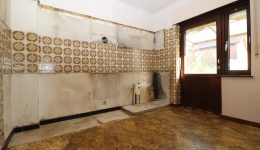 Im Erdgeschoss befinden sich eine Eingangshalle mit separatem WC, ein Wohnzimmer sowie eine Küche, die derzeit nicht eingerichtet ist. Von der Küche aus besteht ein direkter Zugang zum Außenbereich an der Rückseite des Hauses. Das Obergeschoss umfasst drei Schlafzimmer, davon zwei größere und ein kleineres, sowie ein Badezimmer, das vollständig zu renovieren ist. Der Keller besteht aus mehreren Räumen, darunter ein Heizraum und eine Waschküche.