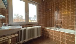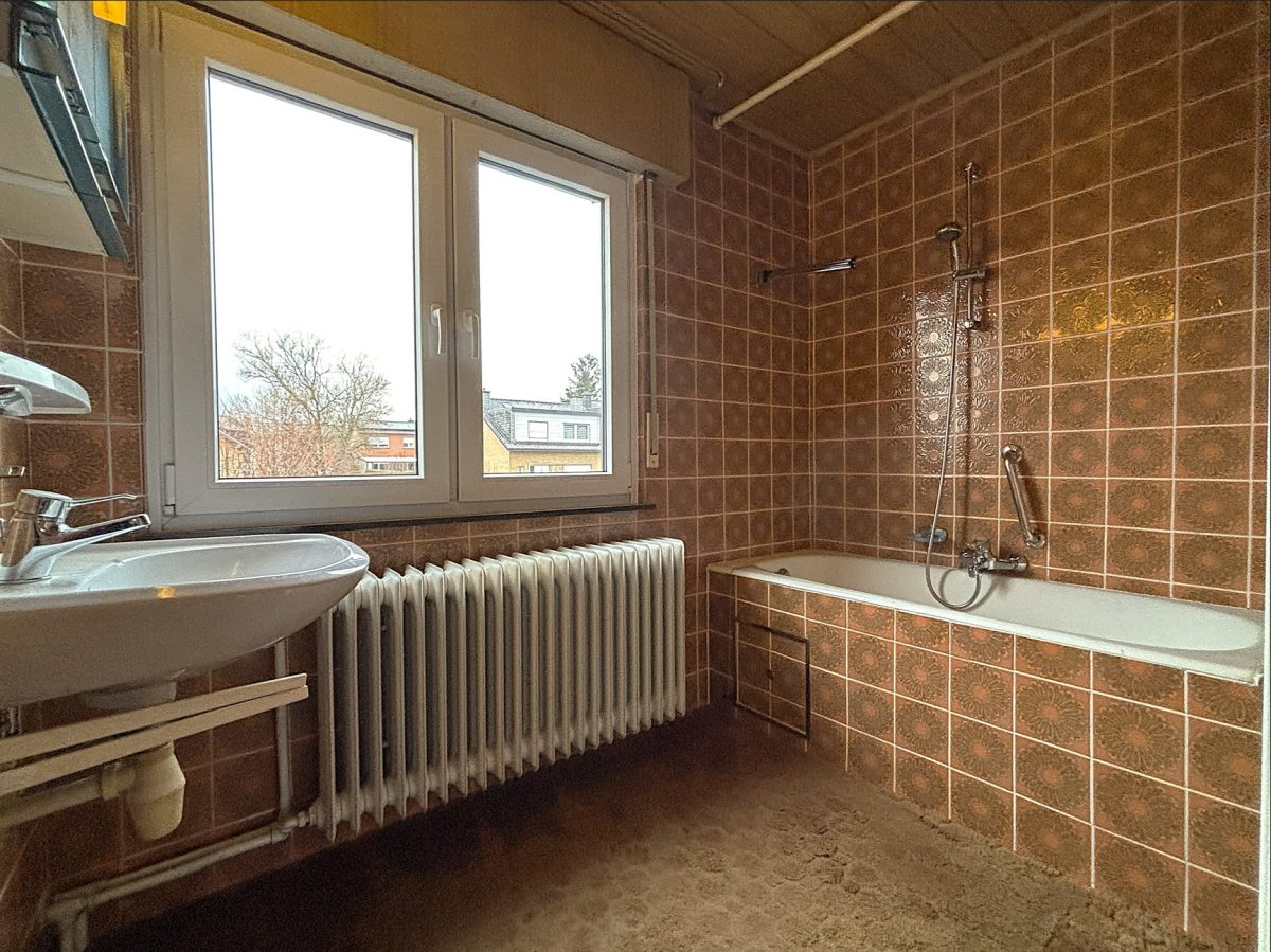 Technisch verfügt das Haus über eine neuere Ölheizung sowie neuere Fensterrahmen. Abgesehen von diesen Elementen ist das gesamte Haus zu renovieren. Der Außenbereich bietet einen gepflegten, nach Südosten ausgerichteten Garten mit Terrasse sowie eine Garage mit elektrischem Tor.