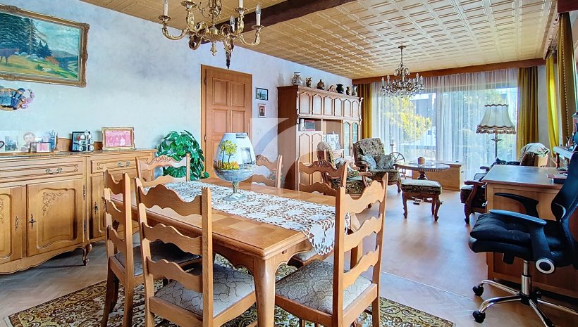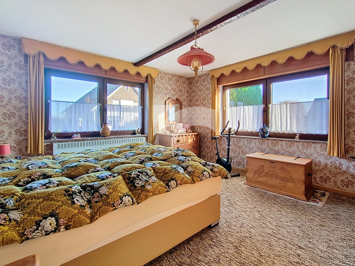 BÜTGENBACH An der Baumschule, 2: Diese gepflegte Villa aus dem Jahr 1973 befindet sich in einer ruhigen und grünen Wohngegend, nur wenige Schritte vom Bütgenbacher See und dem Ortszentrum entfernt. Der Wohnbereich besticht durch helle Räume, eine warme Atmosphäre und eine schöne Öffnung nach außen. Die Räume sind funktional gestaltet und bieten eine solide Basis, die eine Modernisierung nach Ihren persönlichen Vorstellungen ermöglicht. Das Haus verfügt über mehrere komfortable Schlafzimmer, darunter ein großes Schlafzimmer im Erdgeschoss, sowie über verschiedene Räume im Obergeschoss, die als Schlafzimmer, Büro, Freizeitraum oder Abstellfläche genutzt werden können. Das voll unterkellerte Untergeschoss umfasst eine geräumige Garage, eine große Werkstatt, eine Waschküche sowie mehrere Lagerräume – ideal für Heimwerker oder die praktischen Anforderungen des Alltags.Im Außenbereich genießen Sie einen angenehm angelegten, gut ausgerichteten Garten, der das Haus umgibt und mit seinen Grünflächen zum Entspannen einlädt. PVC-Fenster mit Doppelverglasung (2011) und Rollläden – Öl-Zentralheizung mit neuwertigem Heizkessel – elektrische Installation nicht konform und instandzusetzen. Eine Immobilie mit großem Potenzial, die Ruhe und Komfort in einem sehr angenehmen Wohnumfeld vereint.