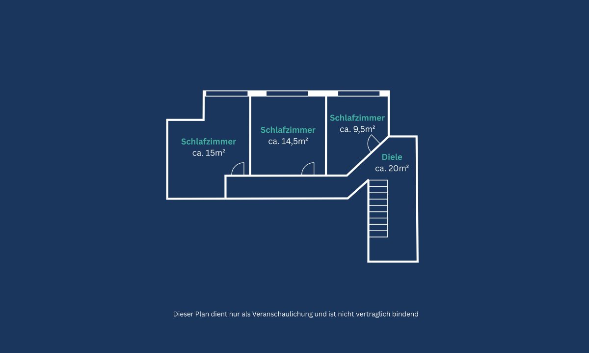 Im Obergeschoss führt ein Flur drei weiteren Schlafzimmern.