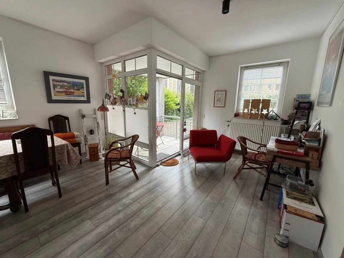 Besonders hervorzuheben ist die etwa 20 m² große überdachte Sonnenterrasse, die Sie direkt vom Wohnbereich aus über eine Schiebetür erreichen. Ob gemütliches Frühstück im Freien oder laue Abende – hier genießen Sie Ihr eigenes Stück Lebensqualität, mitten in der Stadt.