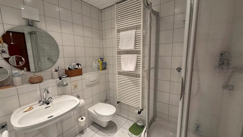 Ihr neues Schlafzimmer ist mit warmem Laminatboden ausgelegt und verfügt über einen Rollladen zur Verdunklung – ein Rückzugsort, der Ruhe verspricht. Im angrenzenden Badezimmer bleiben keine Wünsche offen: Neben einer Badewanne stehen Ihnen auch eine Dusche, ein WC, ein Waschbecken sowie ein dekorativer Heizkörper zur Verfügung – ideal für einen entspannten Start in den Tag.