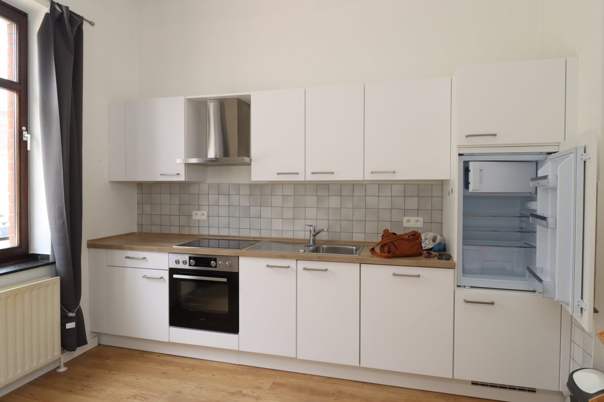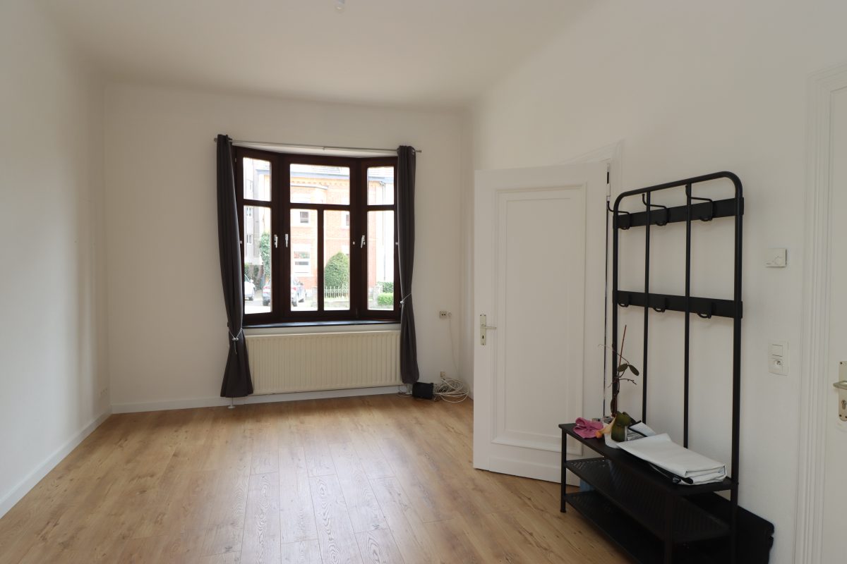 Die Gesamtfläche der Wohnung ist wie folgt unterteilt: vom Wohnungseingang gelangt man in den offenen Wohn- Essbereich, der sowohl zur Straßenseite als auch zur Gartenseite schöne große Fenster bietet, die viel natürlichen Lichteinfall ermöglichen. Eine doppelflügelige Türe ermöglicht es diesen Raum in ca. 2 gleichgoße Flächen zu unterteilen. Hierdurch entsteht ein weiterer Raum, der sich als 2.Schlafzimmer oder Büro eignen würde. Die Küche, welche 2023 mit einer komplett neuen Einbauküche ausgestattet wurde, hat ebenfalls ein großes Fenster zur Straßenseite hin. Der Bodenbelag ist aus Echtholzdielen und vermittelt ein angenehmes Wohnambiente. Des Weiteren gibt es ein separates Gäste-WC sowie ein Schlafzimmer und ein Duschbad, welches sich ruhig gelegen zur Gartenseite hin befindet. Ein großer Kellerraum mit Fenster bietet sehr viel Stauraum. Der Anschluss für Waschmaschine und Trockner befindet sich in der gemeinsamen Waschküche im Untergeschoss. Von hier aus hat man direkten Zugang in den Garten.