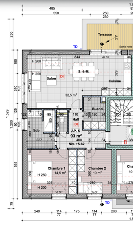 Schlafzimmer: 2 Bäder: 1 Wohnfläche: 93 m² Heizung: Chauffage Partiel Au Sol