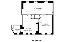 Das Bauernhaus selbst, mit einer Wohnfläche von ca. 97 m², bedarf einer umfassenden Sanierung. Die geschichtsträchtige Substanz des Hauses lädt dazu ein, den Charme vergangener Zeiten zu bewahren und in ein authentisches Wohnambiente zu verwandeln.