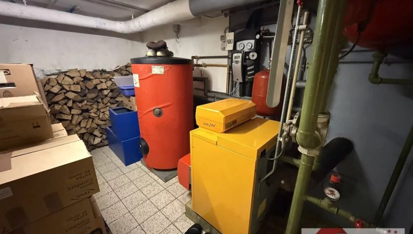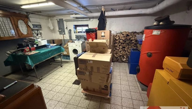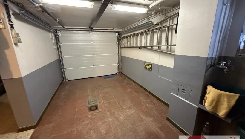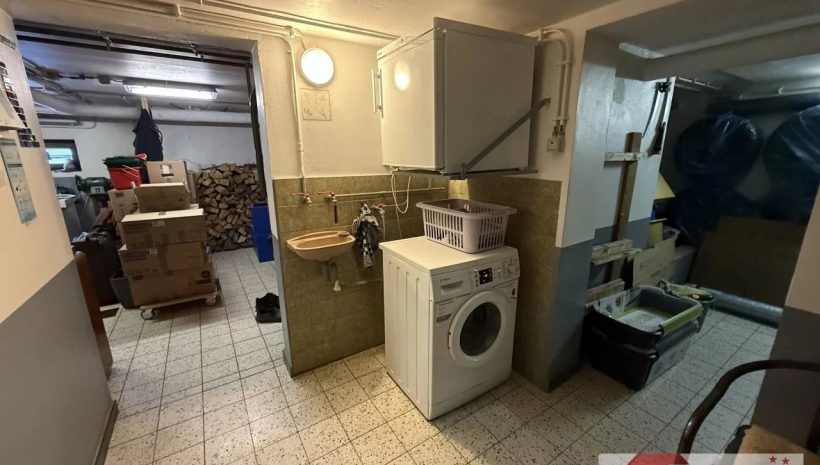 Das Untergeschoss umfasst drei Räume, darunter einen ca. 17 m² großen Kellerraum sowie eine ca. 24 m² große, vollständig geflieste Garage für ein Fahrzeug, ausgestattet mit einem elektrischen Garagentor. Der Keller ist über einen Treppenlift erreichbar – ein geschätzter Vorteil für Personen mit eingeschränkter Mobilität.