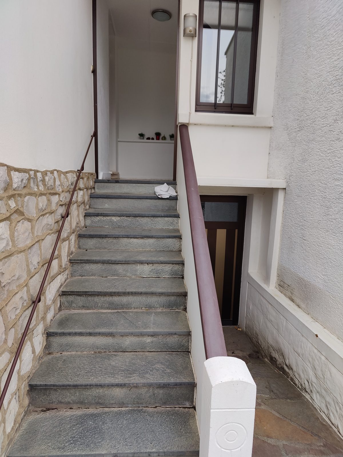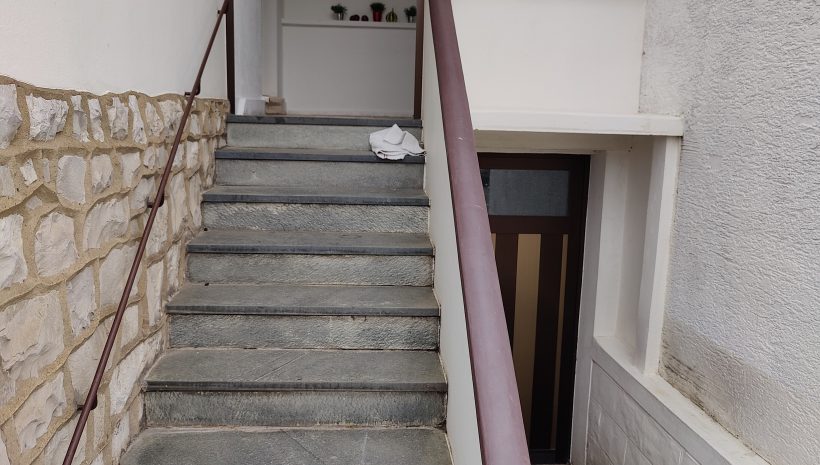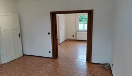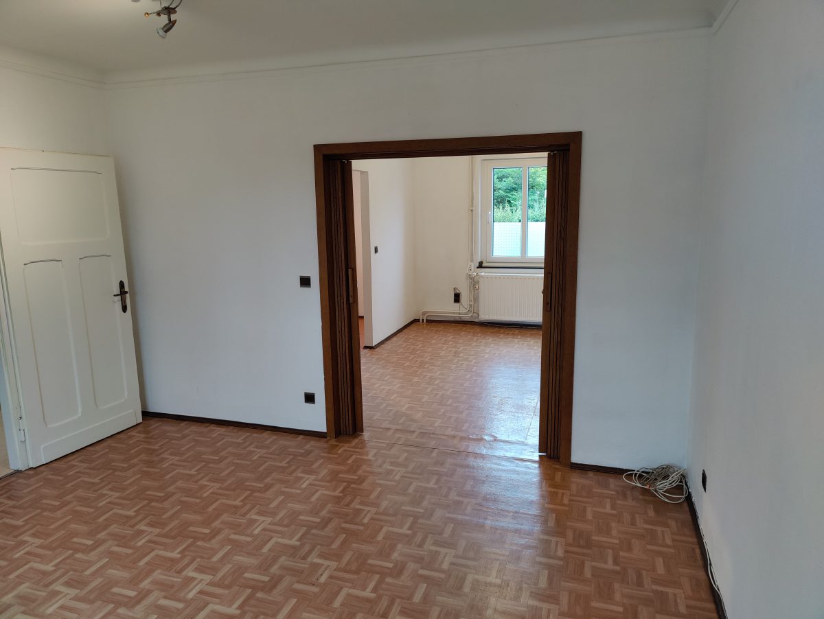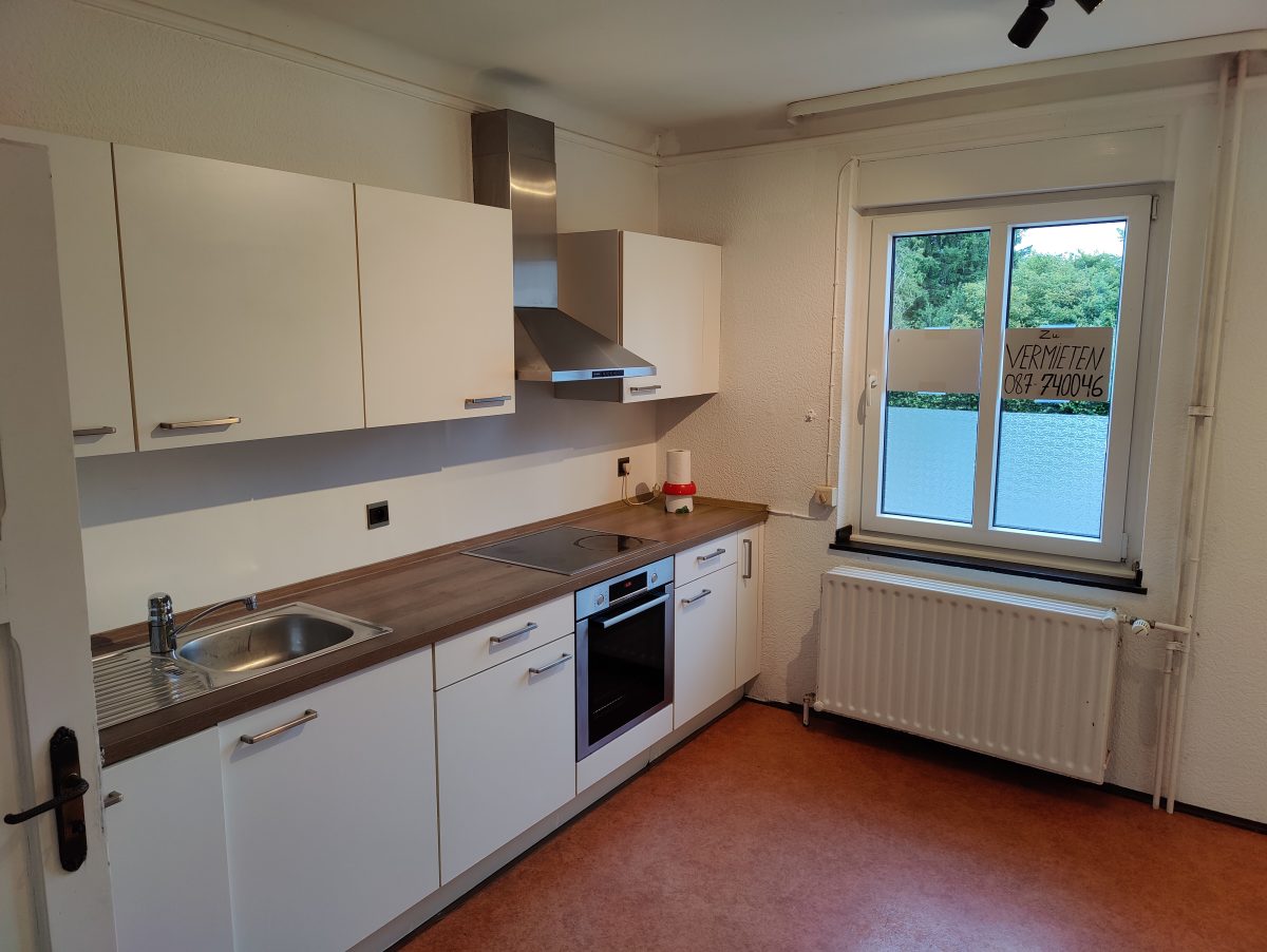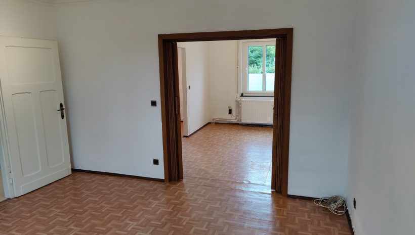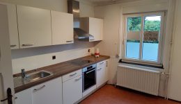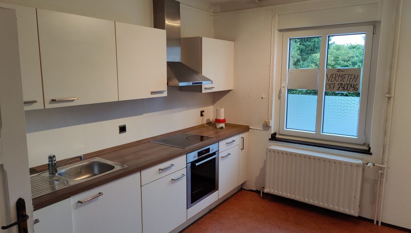 Küche mit Einbauküche, voll unterkellert; keine Garage aber Parkmöglichkeit vor dem Haus; Erdgeschoss : Küche, Wohn- und Esszimmer; halbe Etage : ein Schlafzimmer, ein Badezimmer; 1ste Etage : 2 Schlafzimmer