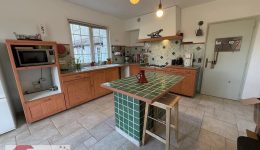 Die angrenzende, vollständig ausgestattete Küche überzeugt durch ihr schlichtes, zeitloses Design und eine zentrale Kochinsel, die zum Mittelpunkt für informelle Mahlzeiten und geselliges Beisammensein wird.