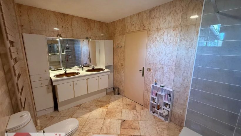 Das Untergeschoss rundet das Angebot mit einer großen Garage, einem Kellerraum und einer Werkstatt ab und bietet praktische Abstell- und Arbeitsflächen. Der Zugang zum beheizten Gemeinschaftspool und zum Tennisplatz stellt schließlich ein seltenes Extra dar, das den exklusiven Charakter dieser Immobilie unterstreicht und ihre Attraktivität für eine anspruchsvolle Klientel auf der Suche nach Komfort, Freizeitmöglichkeiten und hoher Lebensqualität zusätzlich steigert.