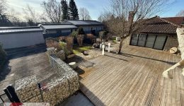 Die direkt vom Wohnbereich zugängliche Terrasse stellt einen der herausragenden Vorzüge dieser Immobilie dar. Mit 100 m² bietet sie außergewöhnlich viel Außenfläche und wird durch ein separates Nebengebäude ergänzt, das sich als Sommerküche, Spiel- oder Freizeitbereich nutzen lässt. Dieses Außenensemble ermöglicht es, die schönen Tage in einer grünen, privaten Umgebung voll auszukosten – ideal für Mahlzeiten im Freien, Empfänge sowie entspannte Stunden mit Familie und Freunden.