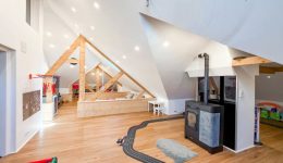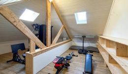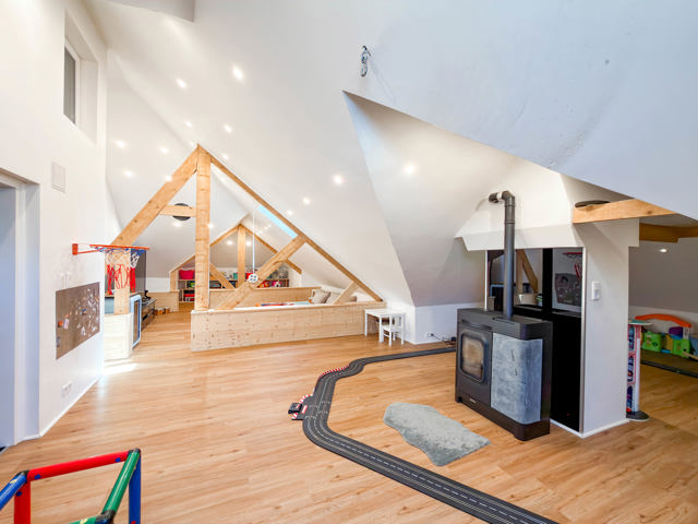 Das Untergeschoss bietet mit einer 260 m² großen Kellerfläche und einer Deckenhöhe von 3 Metern außergewöhnlich viel Stauraum. Technisch ist die Villa mit PVC-Doppelverglasung, Pelletöfen in den Hauptbereichen sowie einer zentralen Pelletheizung ausgestattet.