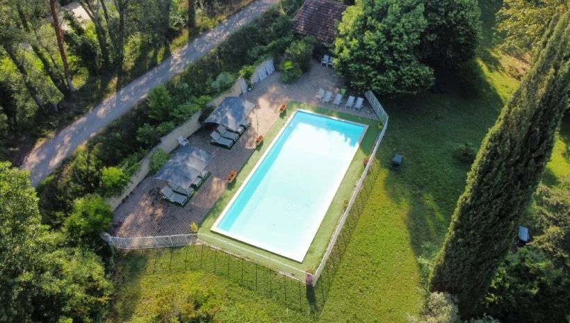 Auf einem bewaldeten Grundstück von 5.317 m² erbaut, verfügt das Gebäude über 993 m² Nutzfläche mit großzügigen Volumen und bemerkenswertem Entwicklungspotenzial. Mehrere sonnenverwöhnte Terrassen, ein weitläufiges Untergeschoss, Garagen, ein Swimmingpool sowie der atemberaubende Panoramablick auf die umliegende Natur verleihen dem Ensemble eine besondere Ausstrahlung – ideal für die Umsetzung eines Hotelprojekts, eines hochwertigen Gästehauses, einer exklusiven Zweitresidenz oder eines außergewöhnlichen Familienanwesens.