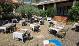 Der Gastronomiebereich überzeugt durch großzügige, einladende Räume: ein eleganter Speisesaal mit 50 Sitzplätzen, eine ebenso große sonnige Terrasse, ein gemütlicher Frühstücksraum mit 40 Plätzen sowie eine intime Terrasse mit 12 Sitzplätzen. Die Ausstattung umfasst Klimaanlage, und das Warmwasser wird über eine Gastherme erzeugt – Komfort und Effizienz sind somit gewährleistet.
