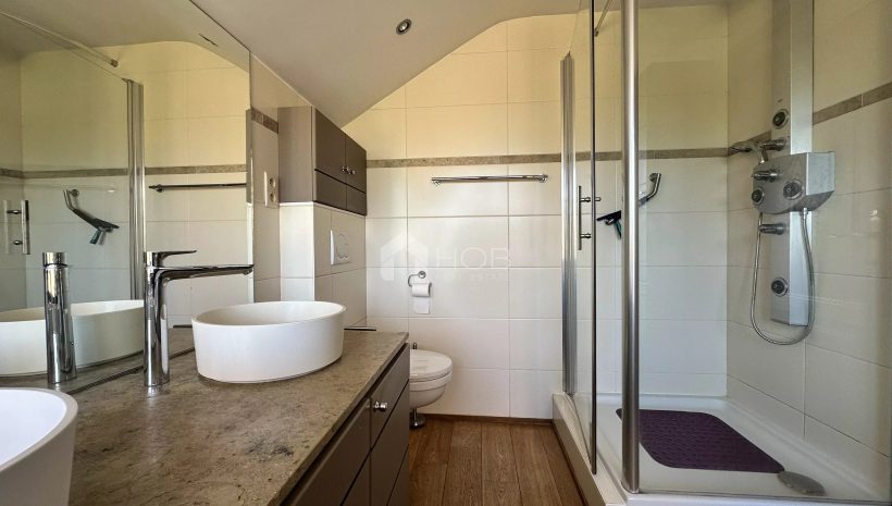 Errichtet in zwei Bauphasen (1996 und 2006), überzeugt das Haus durch eine harmonische Architektur und ein besonders durchdachtes Konzept. Zwei separate Eingänge stellen einen echten Mehrwert dar und eröffnen vielfältige Nutzungsmöglichkeiten: großzügiges Einfamilienhaus, unabhängige Einheit zur Kurzzeitvermietung (z. B. Airbnb), Raum für eine freiberufliche Tätigkeit oder Mehrgenerationenwohnen – jeweils mit voller Autonomie.