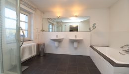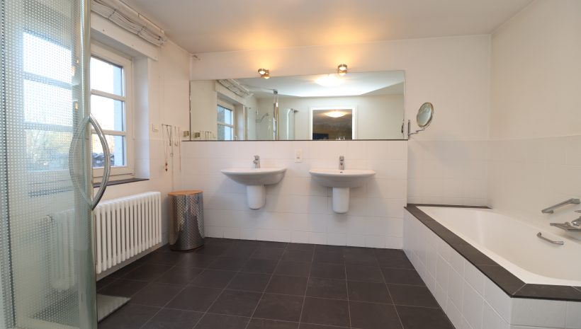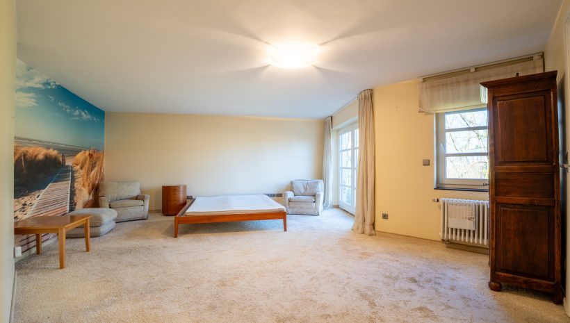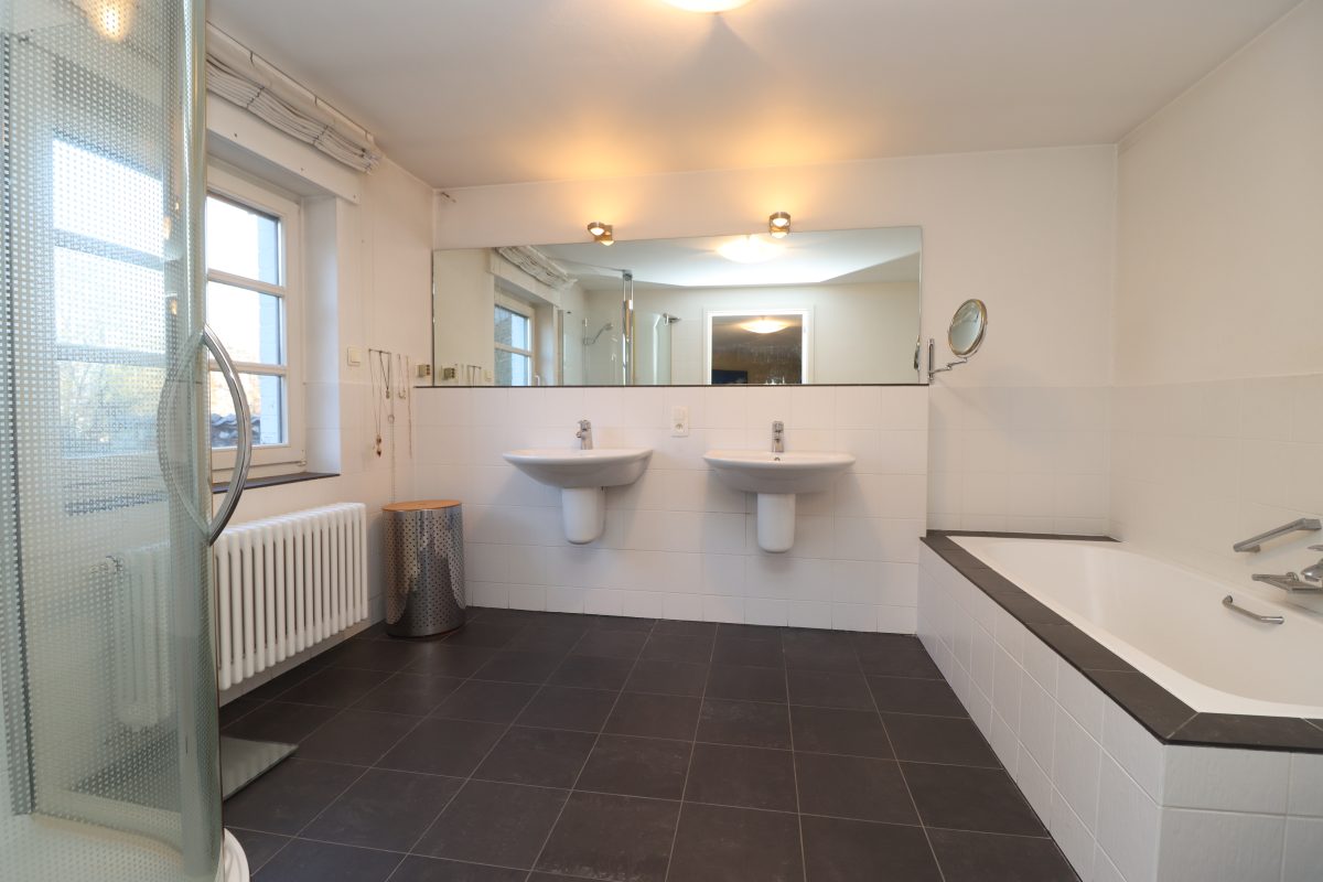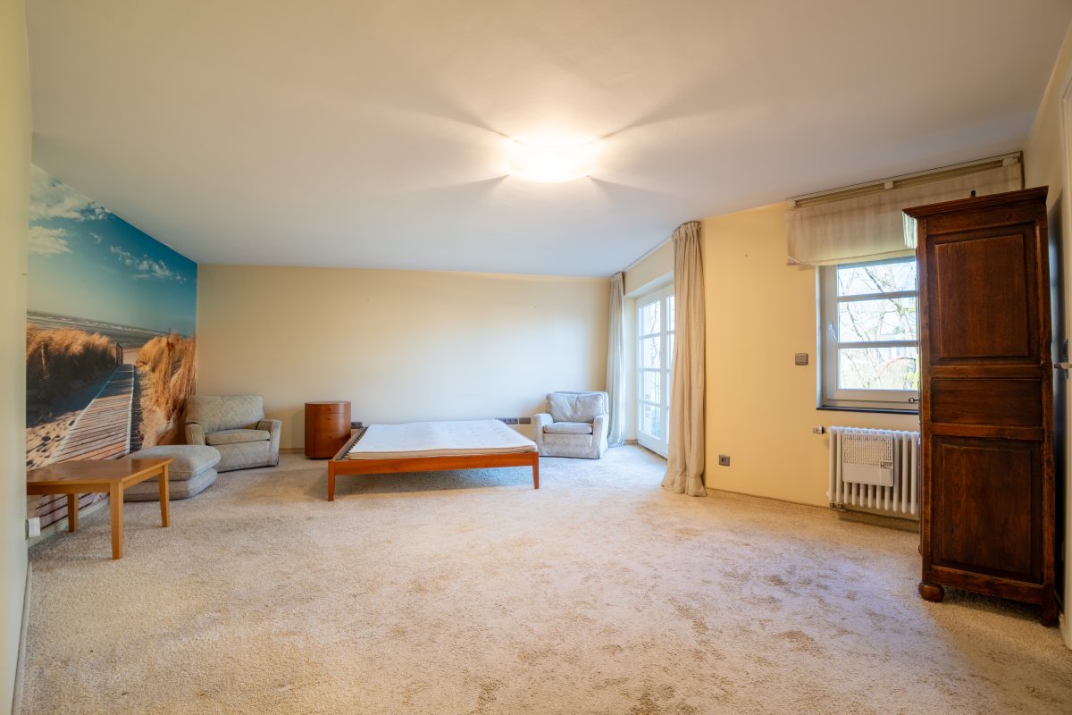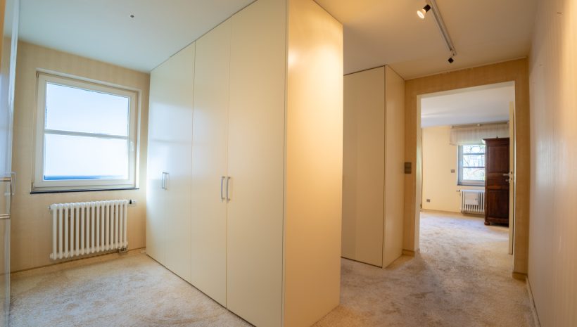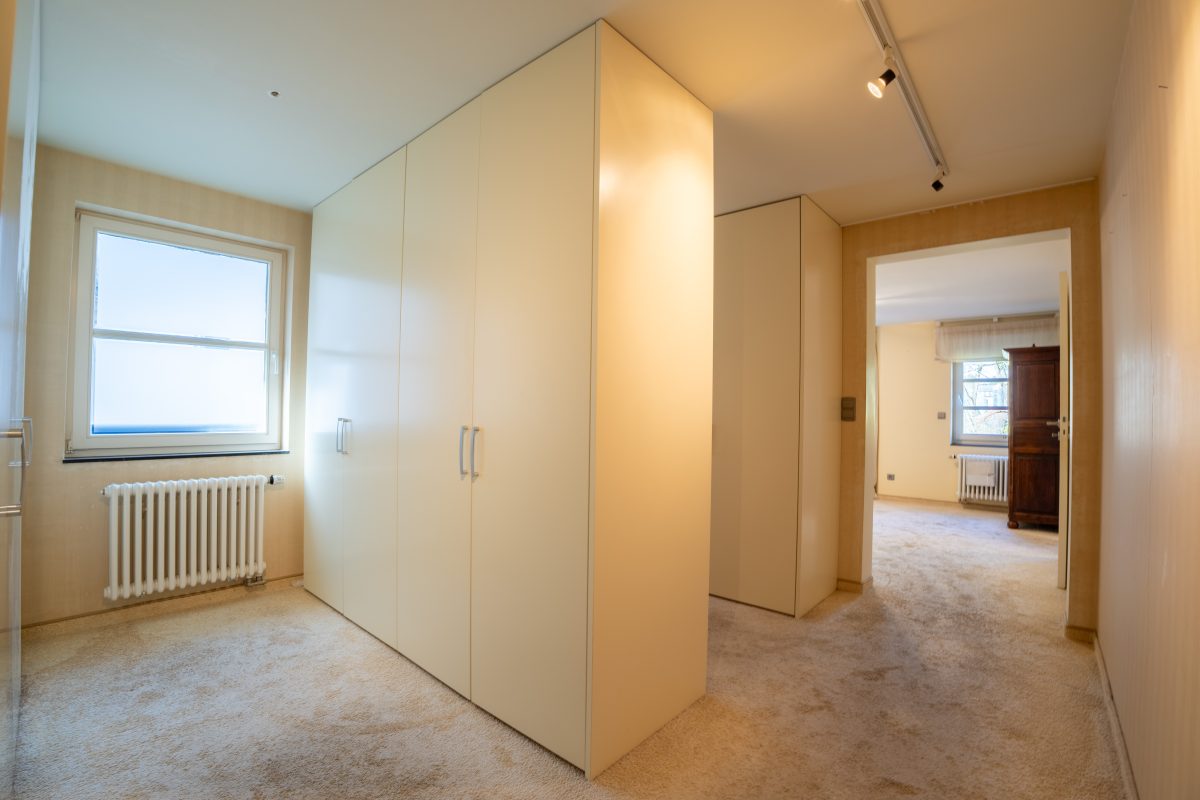 Die erste Etage beherbergt den privaten Schlafbereich mit einem großzügigen Masterbedroom, Ankleidezimmer und einem komfortablen Badezimmer mit Badewanne, Dusche und Doppelwaschtisch. Ergänzt wird diese Etage durch ein separates WC, einen Abstellraum sowie eine kleine, eigenständige Wohneinheit mit Kitchenette und eigenem Badezimmer, ideal für Gäste, Büro oder Mehrgenerationennutzung.