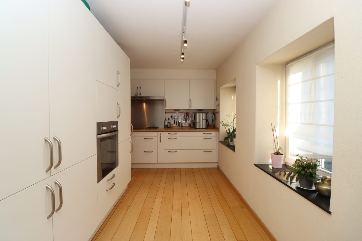 Ein echter Blickfang ist die liebevoll erhaltene, historische Holztreppe, die sich elegant vom Erdgeschoss bis in die dritte Etage windet. Ergänzt wird der besondere Charme durch originale Eichentüren, die den Charakter und die Geschichte des Hauses bewahren.