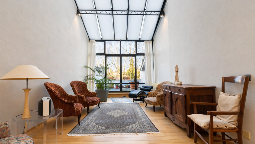 Das Gebäude wurde in den frühen 2000er bis auf wenige Grundmauern vollständig und mit großer Sorgfalt neu aufgebaut. Dabei wurde besonderer Wert auf Qualität, Nachhaltigkeit und natürliche Materialien gelegt. Hervorzuheben sind die Parkettböden und Lehmputzwände, die für ein angenehmes Raumklima sorgen und den hochwertigen Anspruch des Hauses unterstreichen.