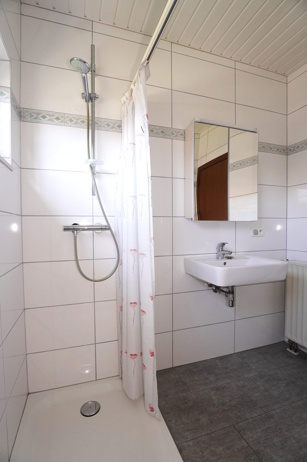 Der Nachtflur führt zum renovierten Duschbad (mit WC, Waschbeckenmöbel und ebenerdige Dusche), sowie zu 3 schönen Schlafzimmern und einem Abstellraum.