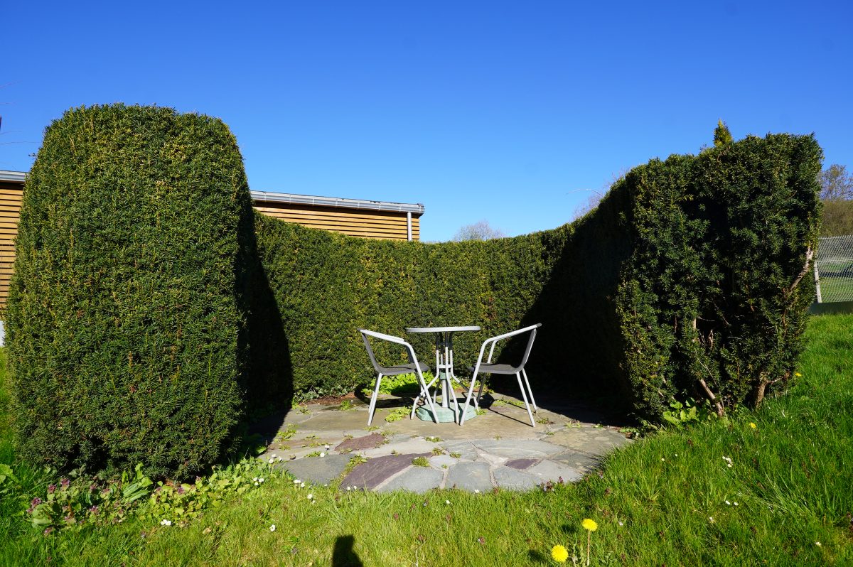Der schöne Garten ist sowohl im vorderen Bereich großzügig angelegt und sonnig als auch im hinteren Teil liebevoll gestaltet und verfügt über eine charmante zweite Terrasse.