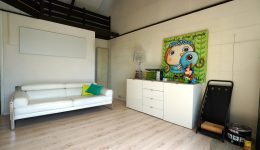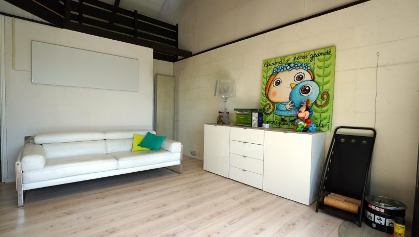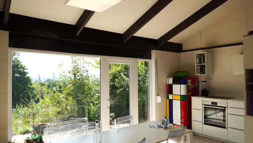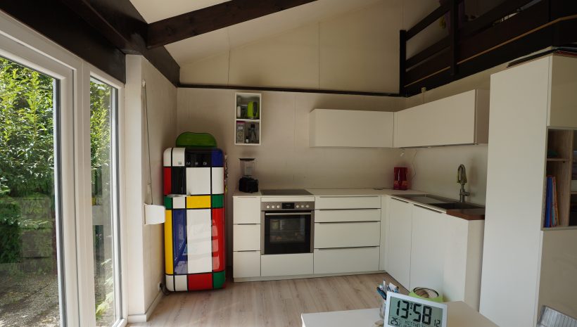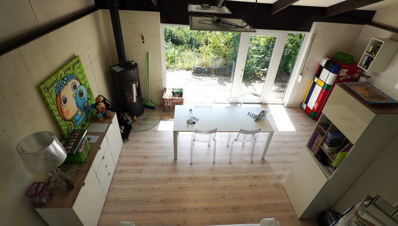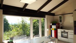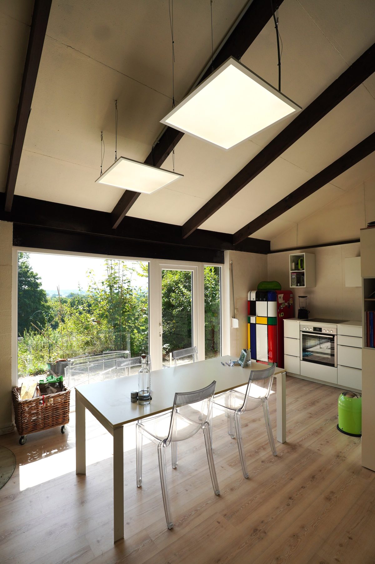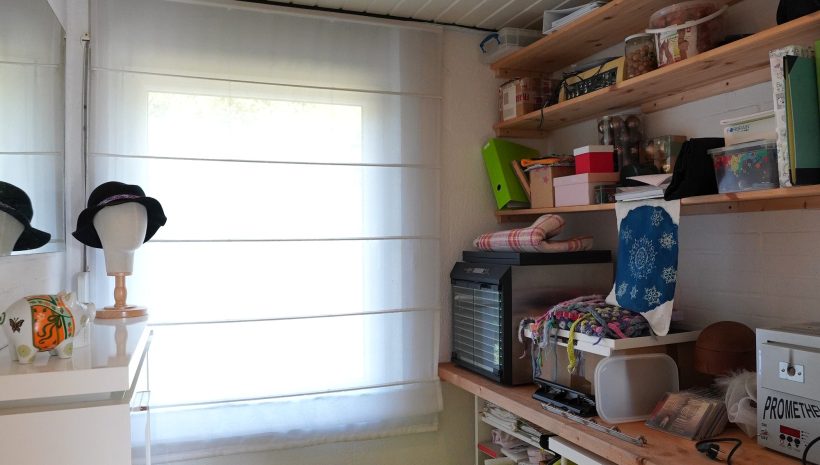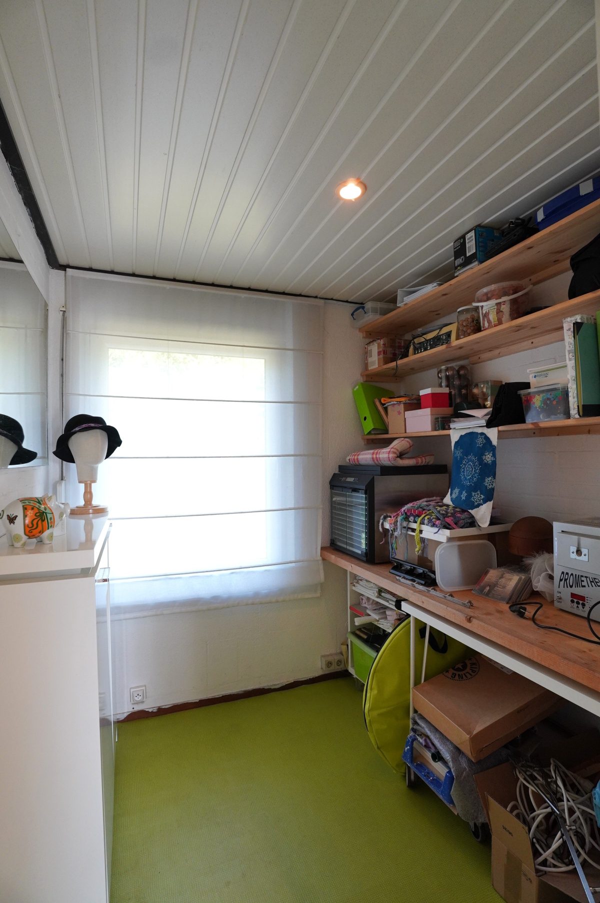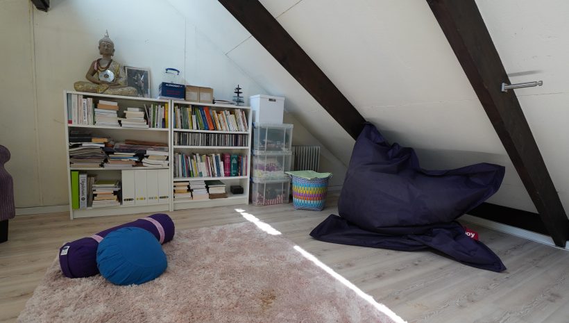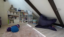 Im Obergeschoss nimmt ein geräumiges Mansardenzimmer diesen hellen Dachraum ein.