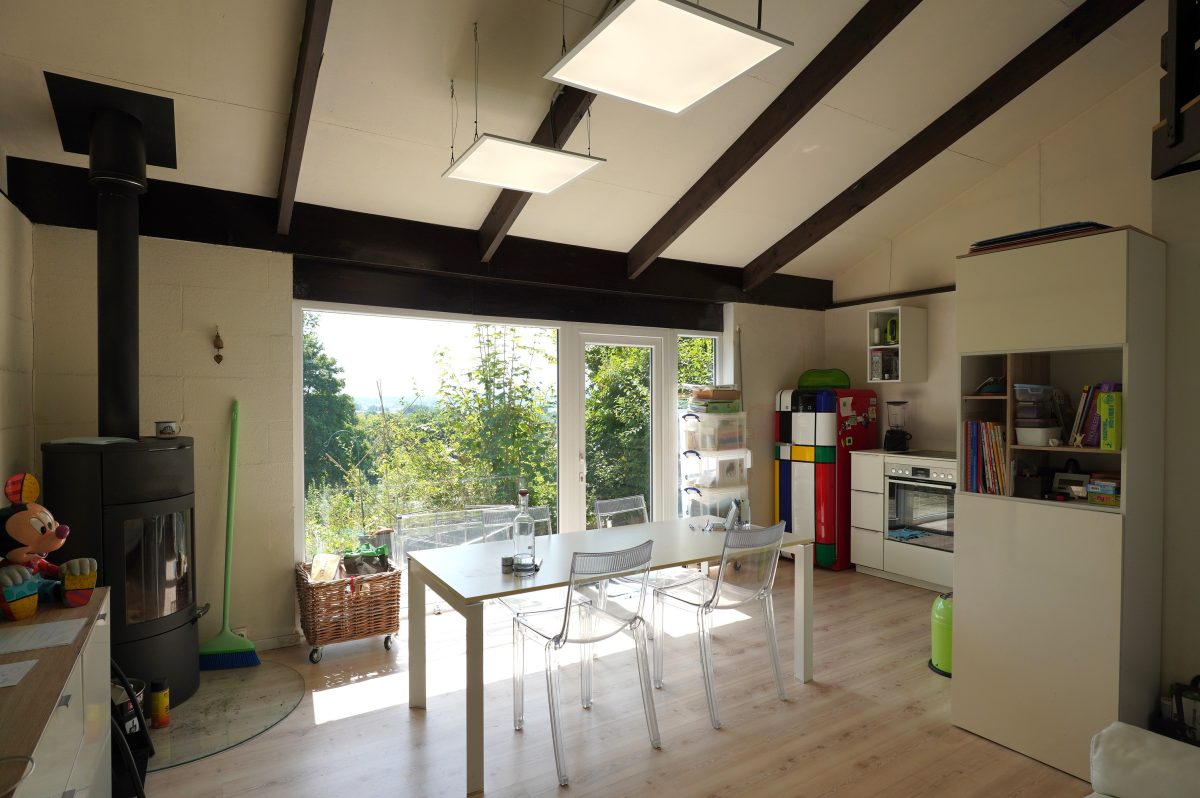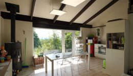 Das Wohnzimmer ist mit einem hochwertigen Holzofen sowie einer Infrarot-Heizung ausgestattet, alle Fenster sind aus PVC mit Doppelverglasung und Rollladen, der obere Teil des linken Giebels wurde isoliert und mit Naturschiefer gedeckt, das Dach wurde vor einigen Jahren erneuert, die elektrische Konformität ist bis 2045 gültig.