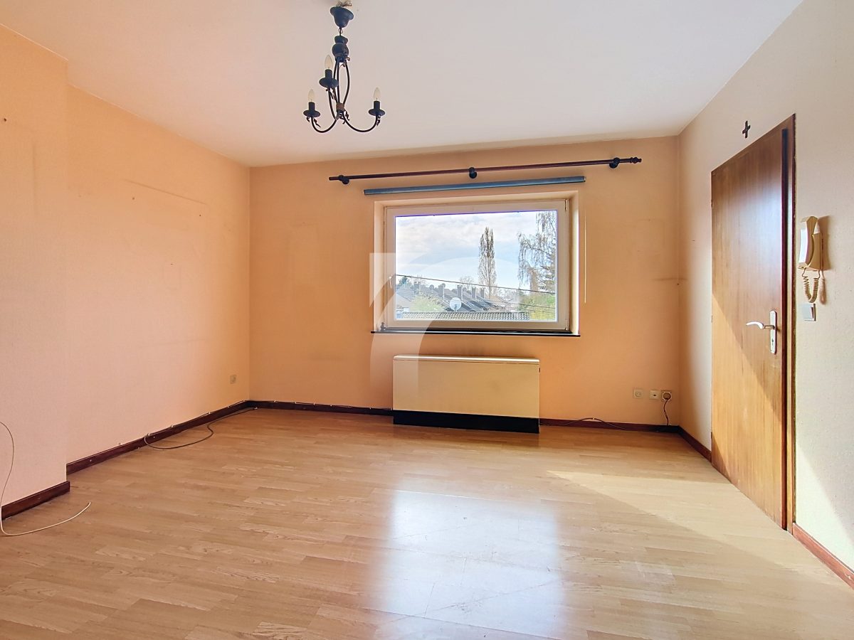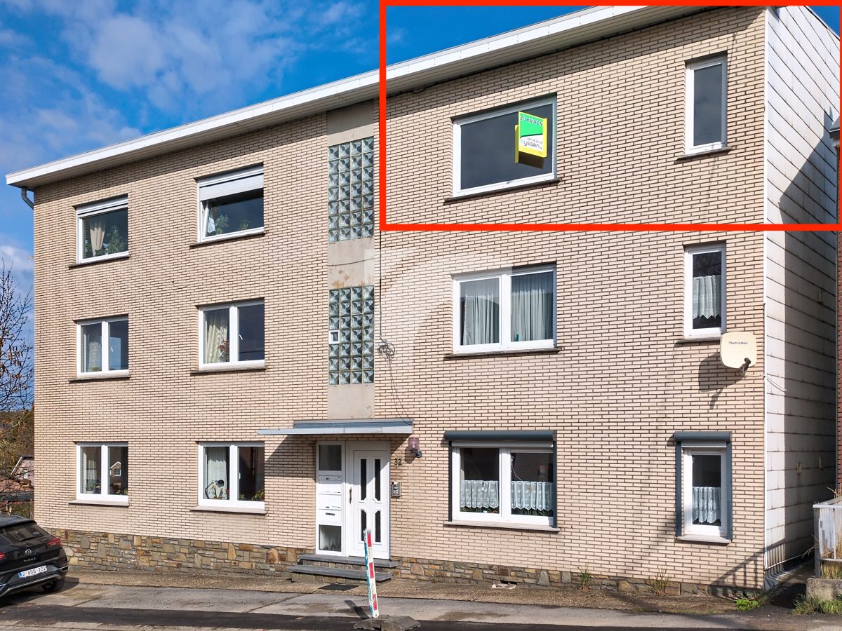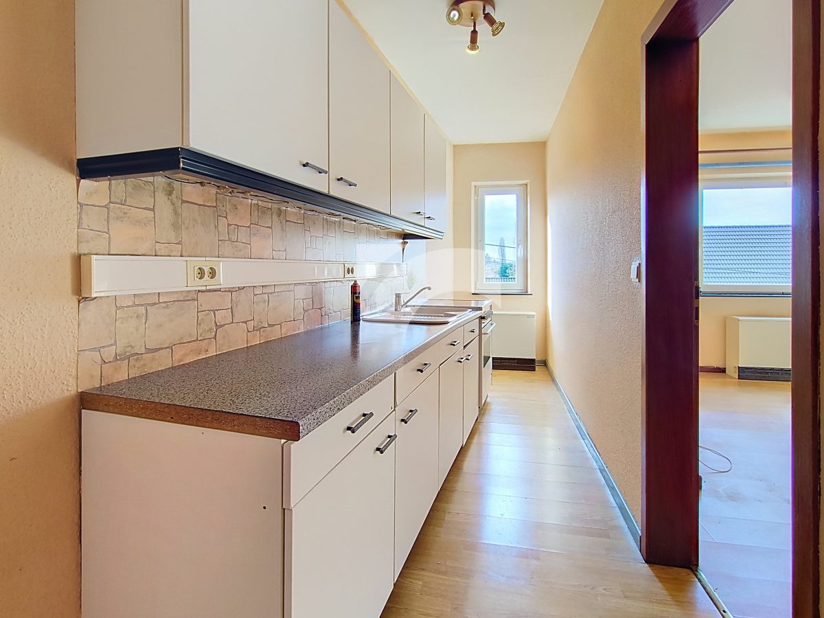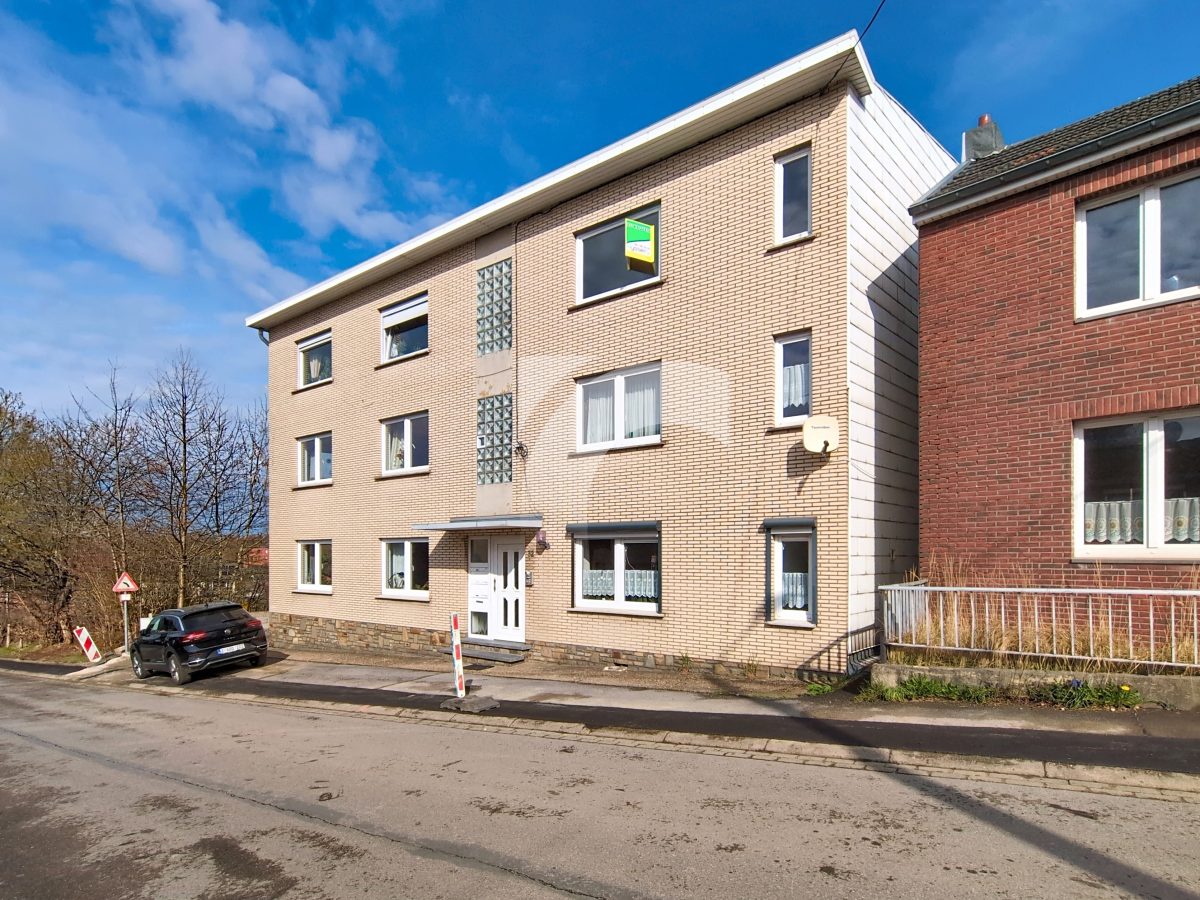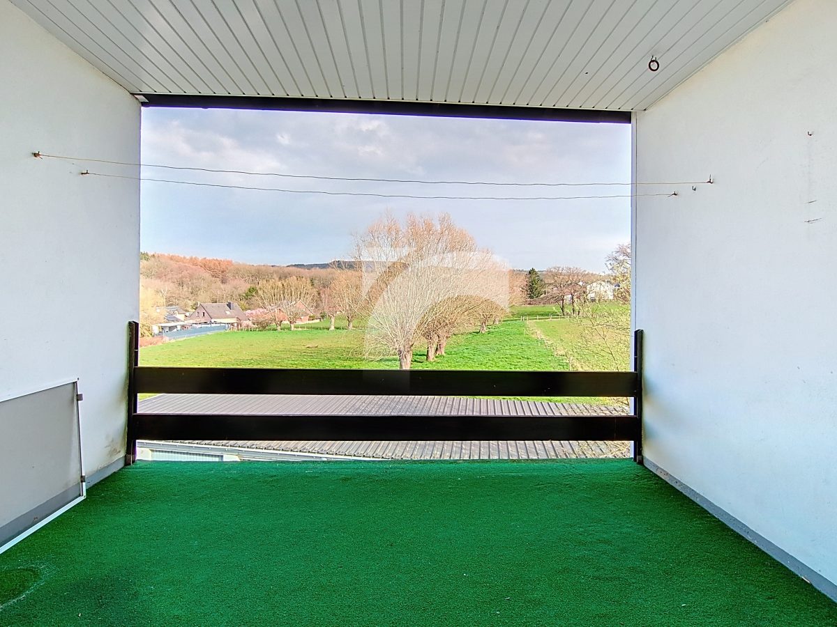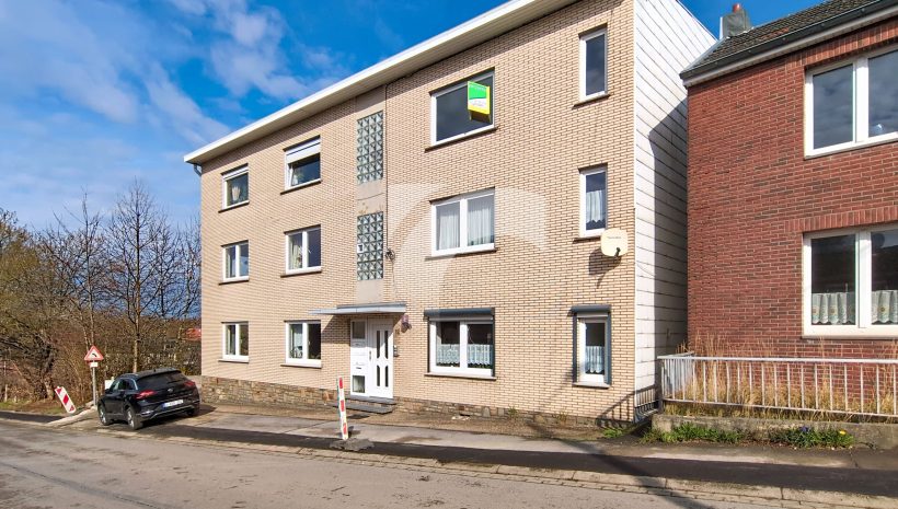 KELMIS Soufflet, 32 bte 4: Eine lichtdurchflutete Wohnung, unweit vom Zentrum und mit einer Garage für ein Auto. Nach einigen Renovierungsarbeiten erwartet Sie hier in einem angenehmen Wohnviertel diese Wohnung mit einem Schlafzimmer und Terrasse mit Weitblick. Kunststofffenster mit Doppelverglasung, Elektroheizung mit Nachtspeicheröfen, keine Verwaltungskosten in dem Miteigentum zu sechs Wohneinheiten. Gerne stehen wir zu Ihrer Verfügung für weitere Auskünfte.