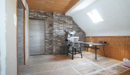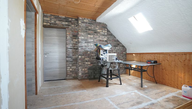 Die erste Etage verfügt über eine Nachtdiele, einen Raum mit Waschmaschinenanschluss und ein WC, der sich zu einem zusätzlichen Badezimmer umgestalten lässt. Zwei große Räume bieten sich ideal als Schlafzimmer oder vielseitig nutzbare Hobbyräume an.