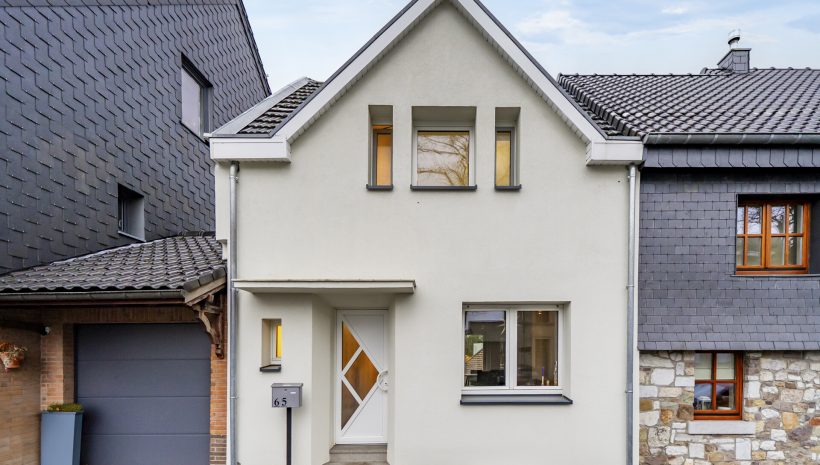 In einer angenehmen Wohnlage von Eupen präsentiert sich dieses vollständig renovierte Reihenhaus als ideale Kombination aus modernem Wohnkomfort, Energieeffizienz und Lebensqualität.