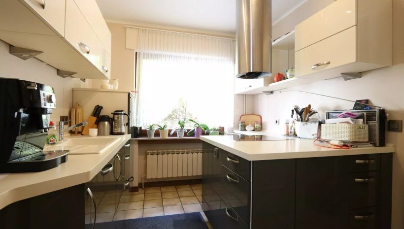 Erdgeschoss: Eingangsbereich (8,85 m²) – Einbauküche (9,50 m²) – Esszimmer (19,64 m²) – WC (1,14 m²) – Büro (9,50 m²) – Frisörsalon (20,00 m²) – Garage mit Platz für 5 Autos (83,50 m²)- Terrasse (30,00 m²)