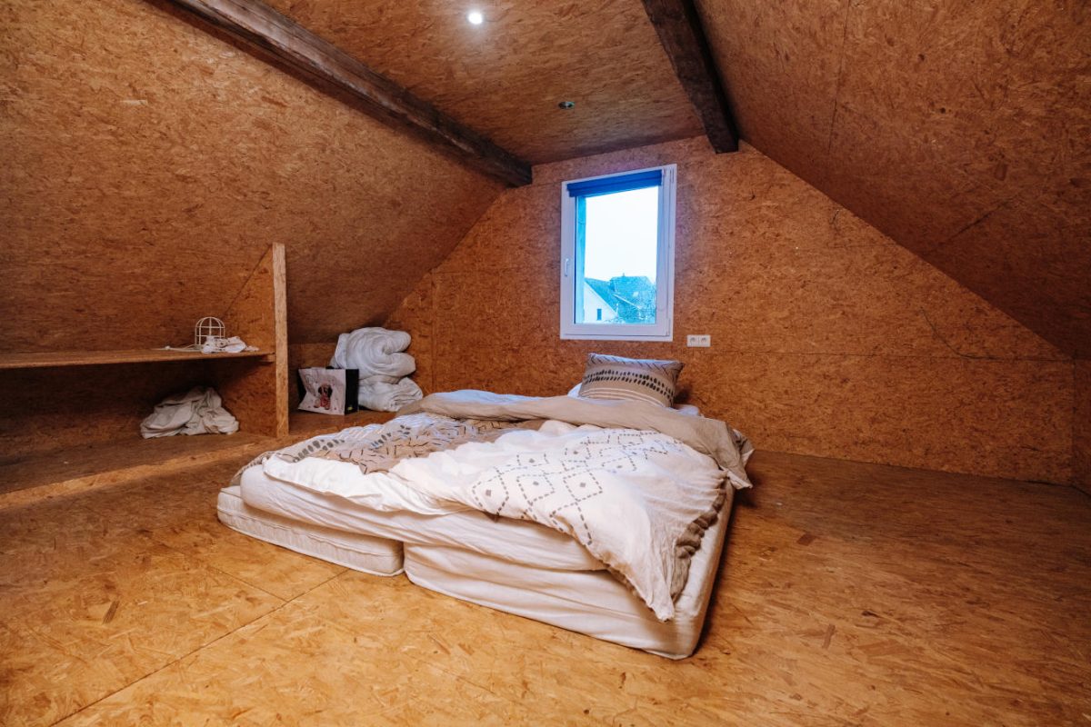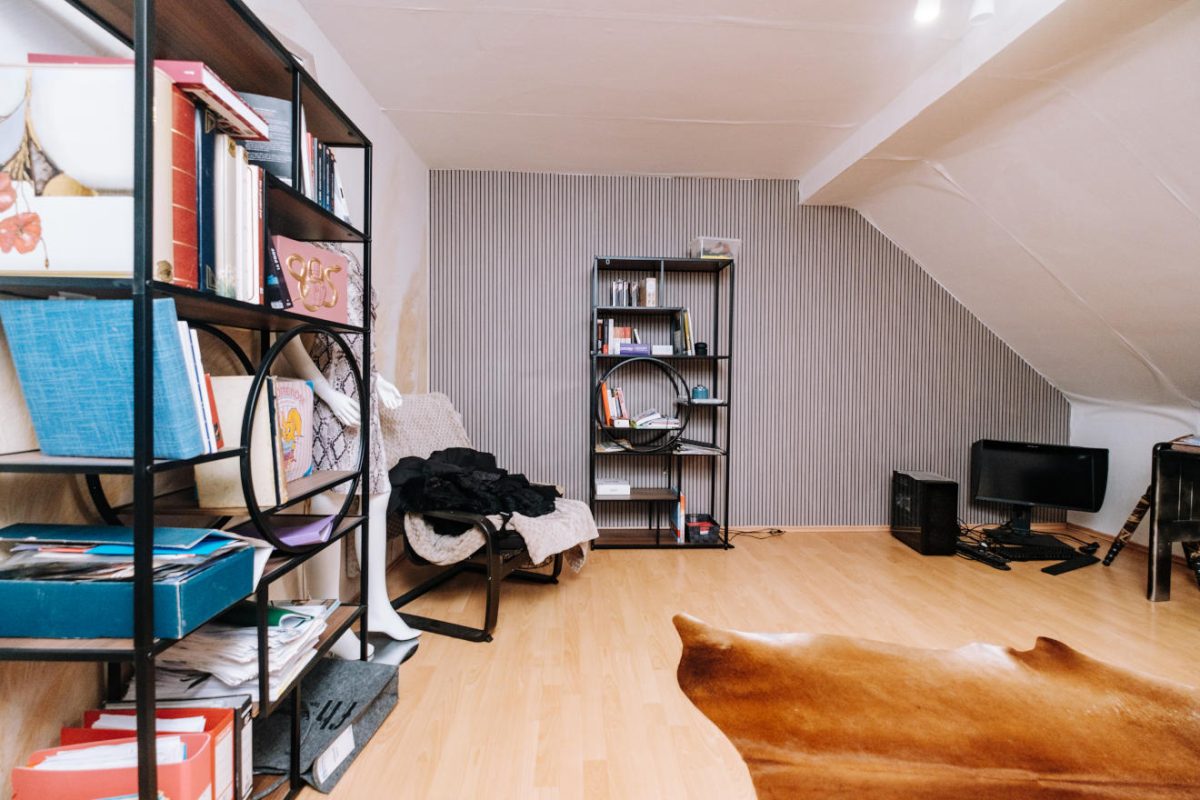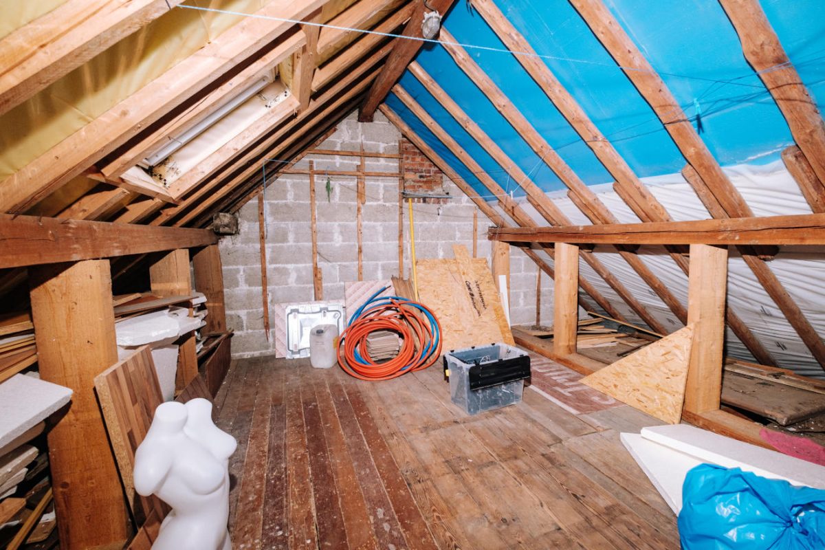 Der vorhandene Speicher ist teilweise ausgebaut: In einer Hälfte befindet sich bereits ein weiteres Zimmer, während der restliche Bereich weiterhin als Abstellfläche oder für einen möglichen zusätzlichen Ausbau genutzt werden kann.