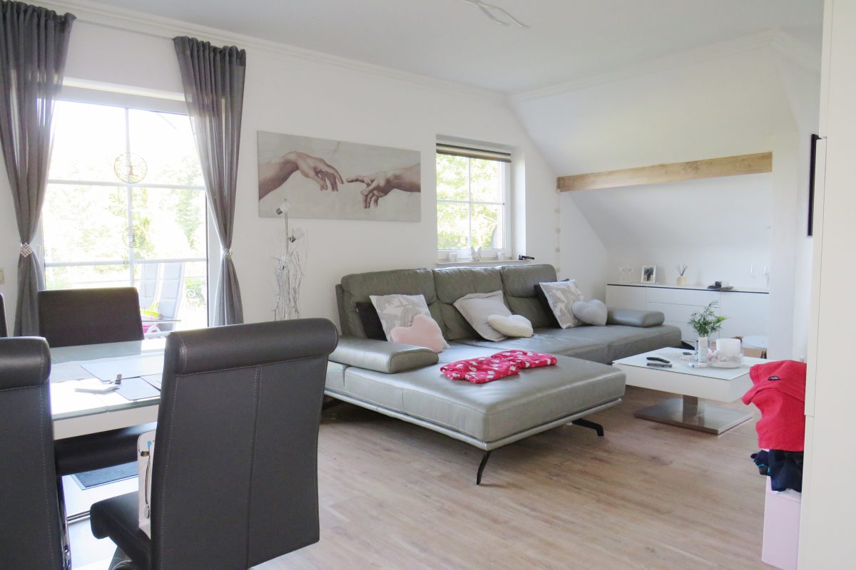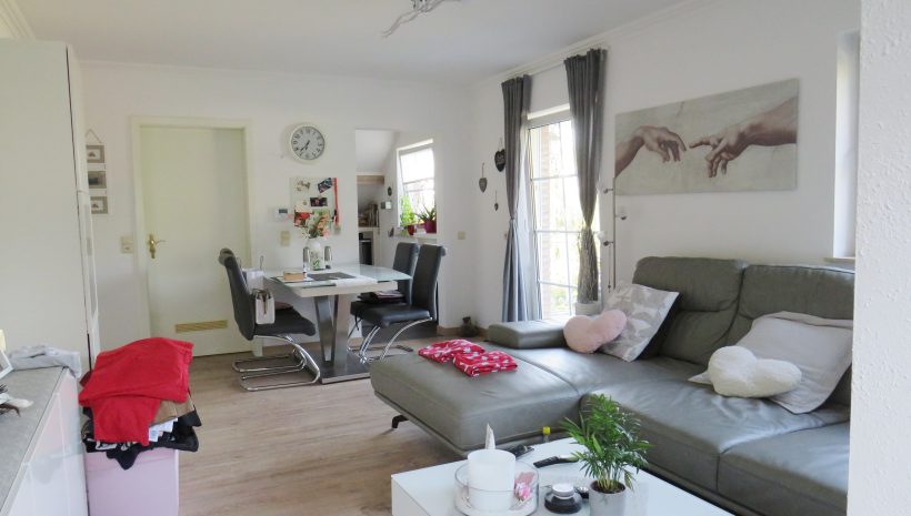 Helle ETAGEN-Wohnung in einem gepflegten Mehrfamilienhaus (4 Einheiten) ohne Aufzug, mit eigenem Eingang. Einteilung: Diele, ein geräumiges Wohnzimmer mit Ausgang zur Terrasse, eingerichtete moderne Küchenecke, 1 Schlafzimmer, 1 Büro, das Bad mit Fenster, Duschwanne, WC und Waschmaschinenanschluss ausgerüstet. Die Böden sind mit Laminat ausgelegt. 2.ET: 1 Schlafzimmer und ein Speicher-Abstellraum. In ruhiger Stadtrandlage am Waldrand und nur 10 Minuten vom Zentrum mit allen Nutzmöglichkeiten. SONSTIGES: Doppelverglasung, Strom- und Gaszähler (Stadtgas -Heizung) sind individuell. Die Anzahlung für Wasserverbrauch beträgt 50€/Monat (Abrechnung 1x jährlich). Keine Bewohnerkosten/ die Kaution beträgt 2 Monatsmieten. EAW: D/260-35423kwh/J. Frei ab 30/01/2026. Weitere Informationen schicken wir ihnen gerne via info@immoge.com . Lia Ploumen