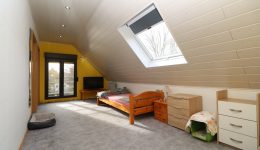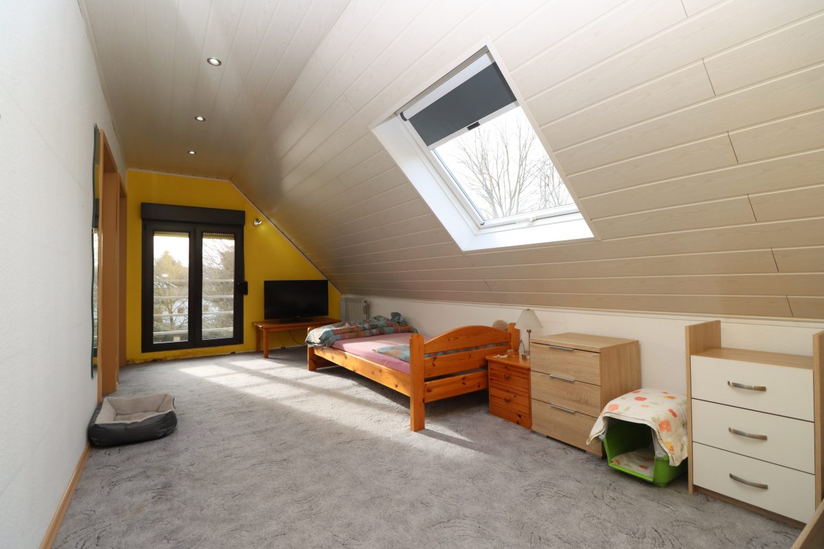 Im Obergeschoss befinden sich ein großzügiger Flurbereich, zwei kleinere Zimmer, ein sehr großes Schlafzimmer, ein Abstellraum sowie ein weiteres Badezimmer.