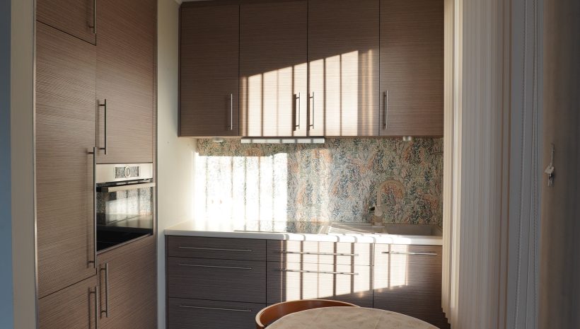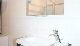 Die Wohnung verfügt über einen Eingangsbereich mit maßgefertigtem Garderobenschrank, ein Schlafzimmer mit Einbauschrank, ein Duschbad mit Dusche, Waschbecken, WC und Anschluss für eine Waschmaschine sowie einen hellen, geräumigen Wohnbereich mit offener, voll ausgestatteter Küche. Vom Wohnzimmer aus Zugang zur sonnigen Terrasse mit kleinem Garten. Die Terrasse kann bei Bedarf mit einer Markise überdacht werden.