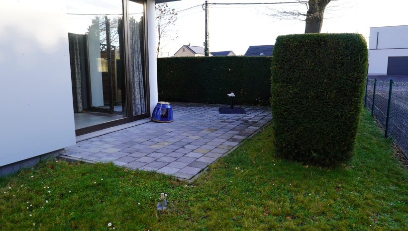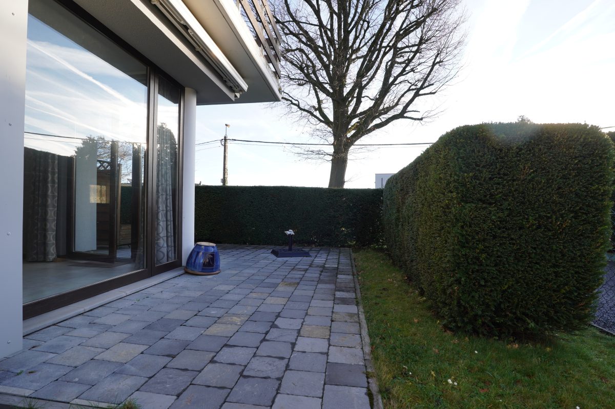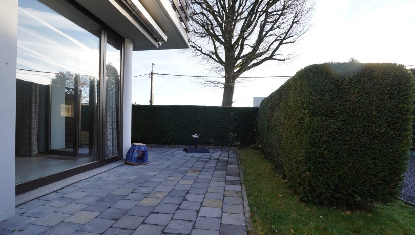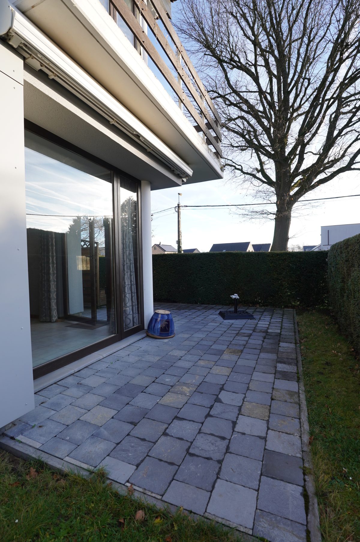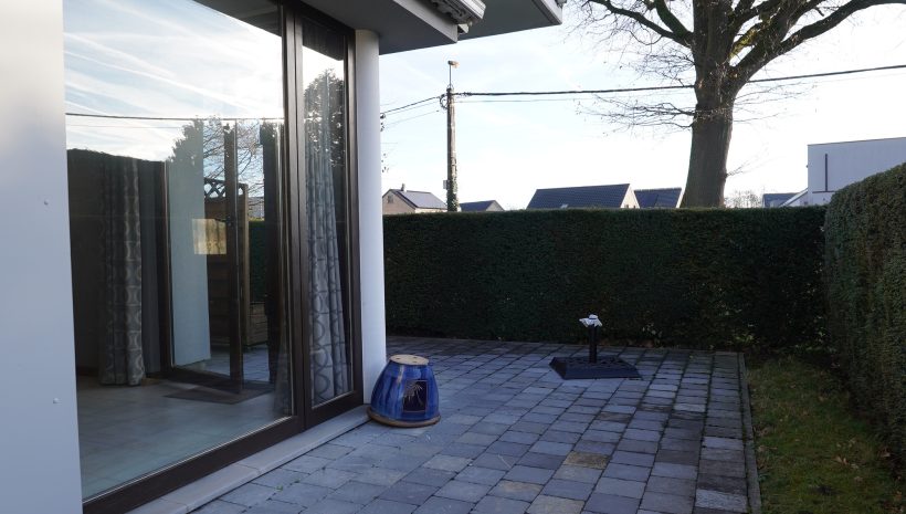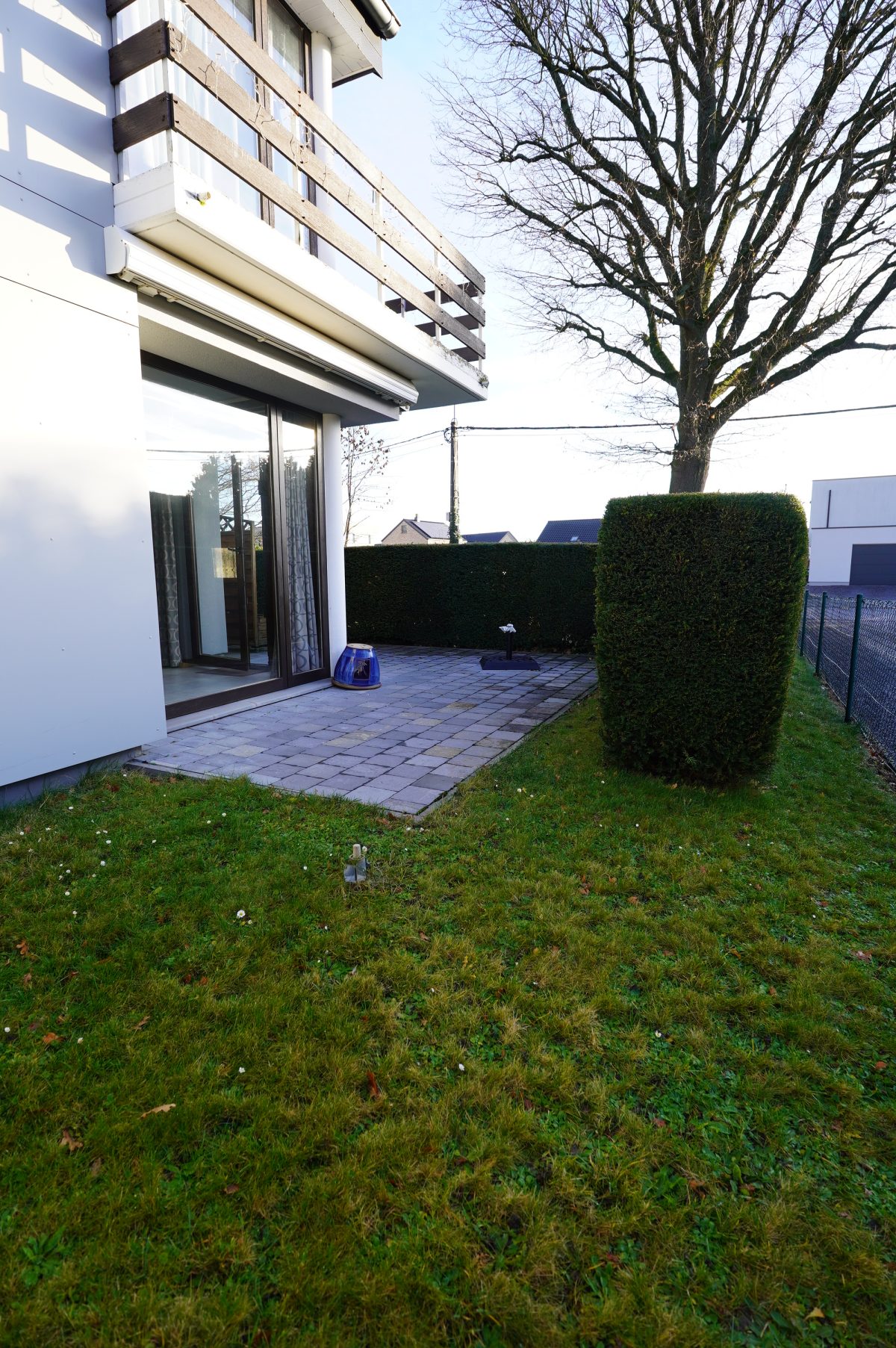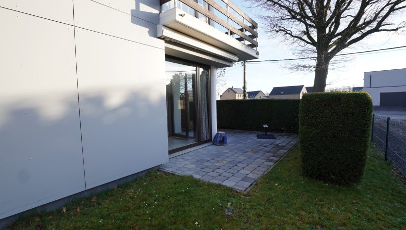 Helle Wohnung im Erdgeschoss eines kleinen Wohnobjekts, nahe dem Zentrum von Montzen, gelegen in der Rue Gustave Demoulin 21/1, 4850 Montzen, mit Garten und Garage.