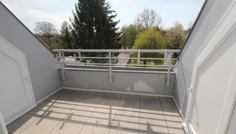 Der gut geschützte Balkon hat Süd-West-Lage, lädt zum Verweilen ein und bietet freien Blick auf den Stadtpark. In der gesamten Wohnung ist ein hochwertiger Parkettboden verlegt.