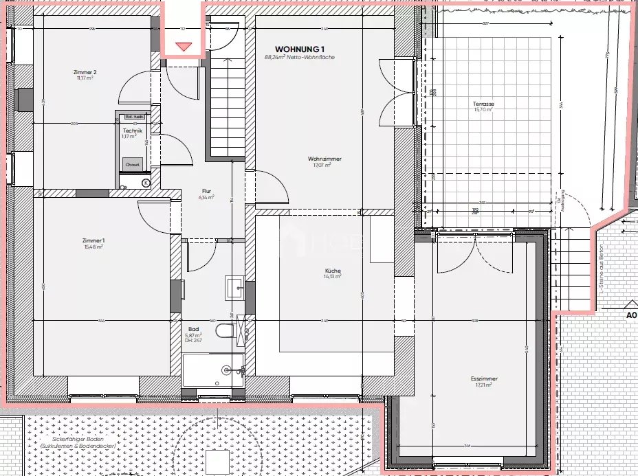 Dieses großzügige Apartment bietet Ihnen auf einer Wohnfläche von 88,24 m² ein durchdachtes Raumkonzept: