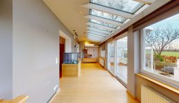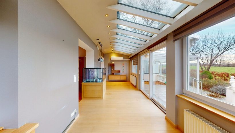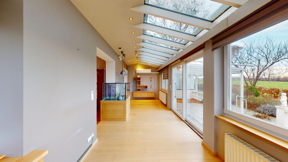 Betreten Sie das stilvolle Interieur und genießen Sie die Helligkeit der drei geschmackvoll gestalteten Zimmer, darunter ein gemütliches Schlafzimmer. Ein modernes Badezimmer sorgt für höchsten Wohnkomfort. Der offene Wohnbereich mit einem bezaubernden Kamin lädt zu gemütlichen Abenden ein, während der angrenzende Wintergarten eine helle und freundliche Atmosphäre bietet, in der Sie zu jeder Jahreszeit entspannen können.