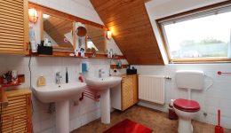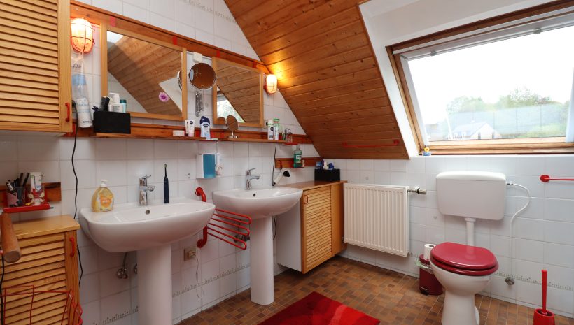 Das Obergeschoss beherbergt vier weitere Schlafzimmer sowie ein weiteres Badezimmer mit Dusche und Badewanne. Der großzügige Speicher kann vielfältig genutzt werden.