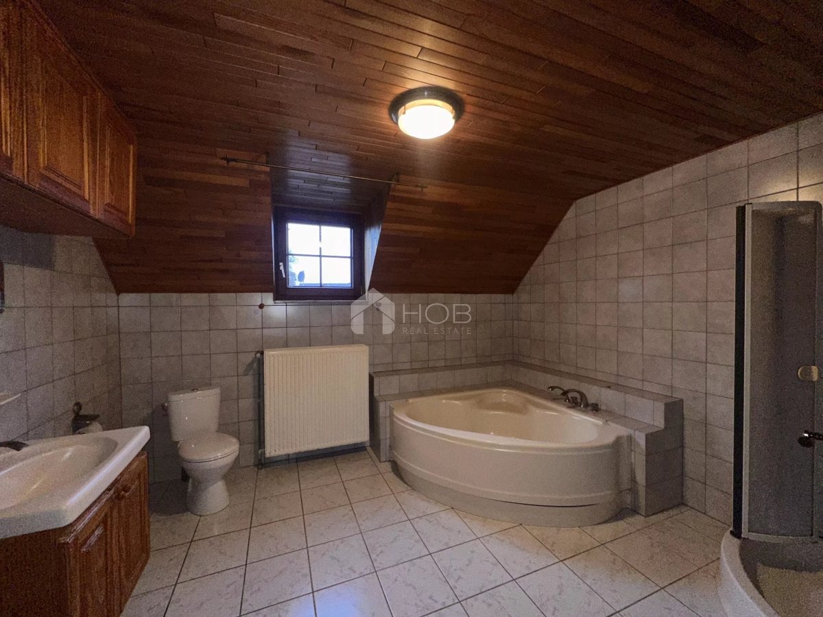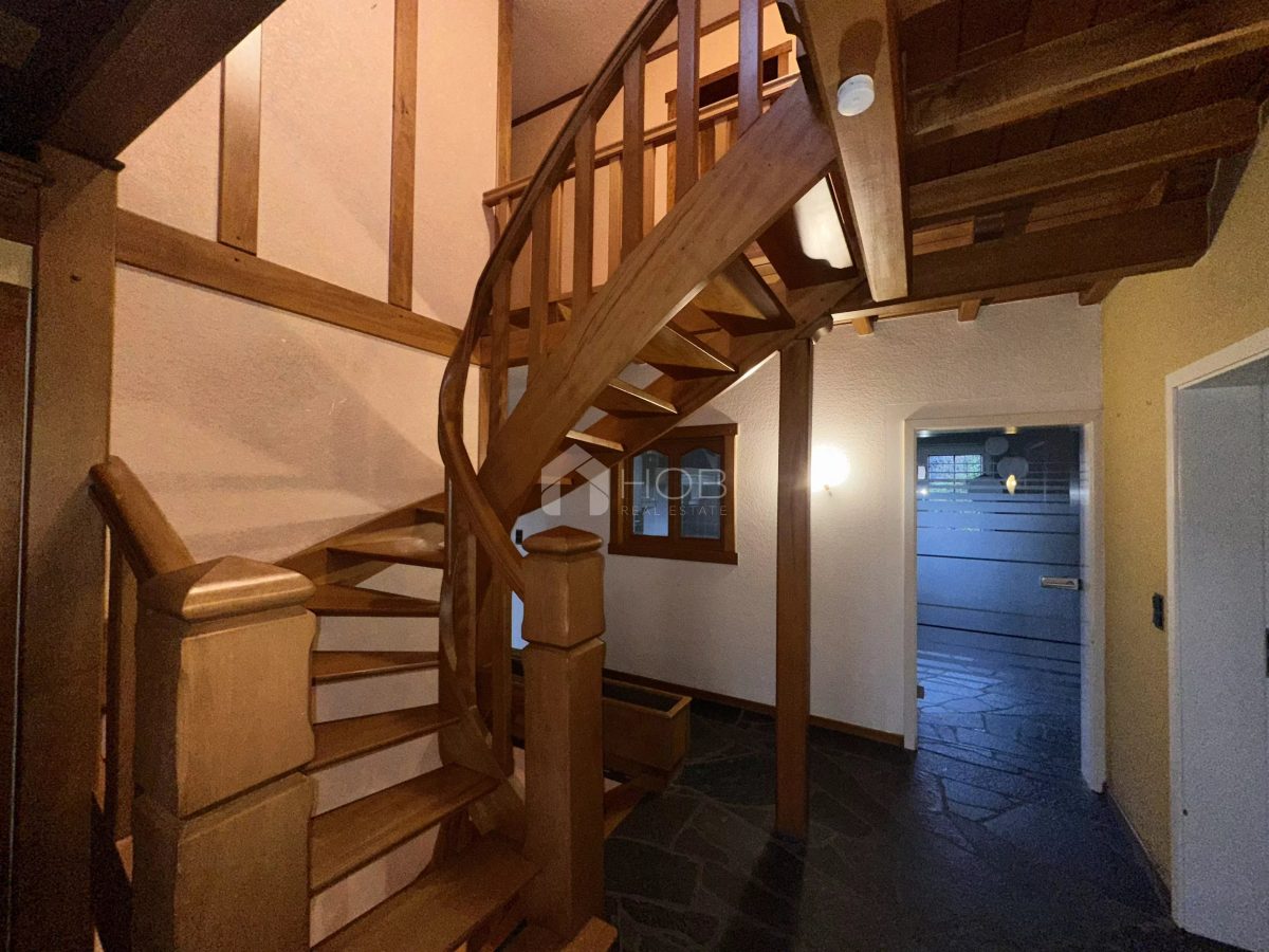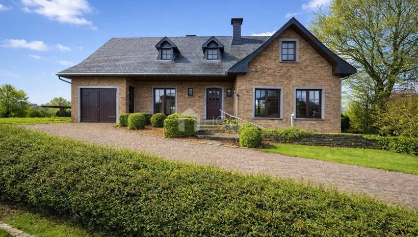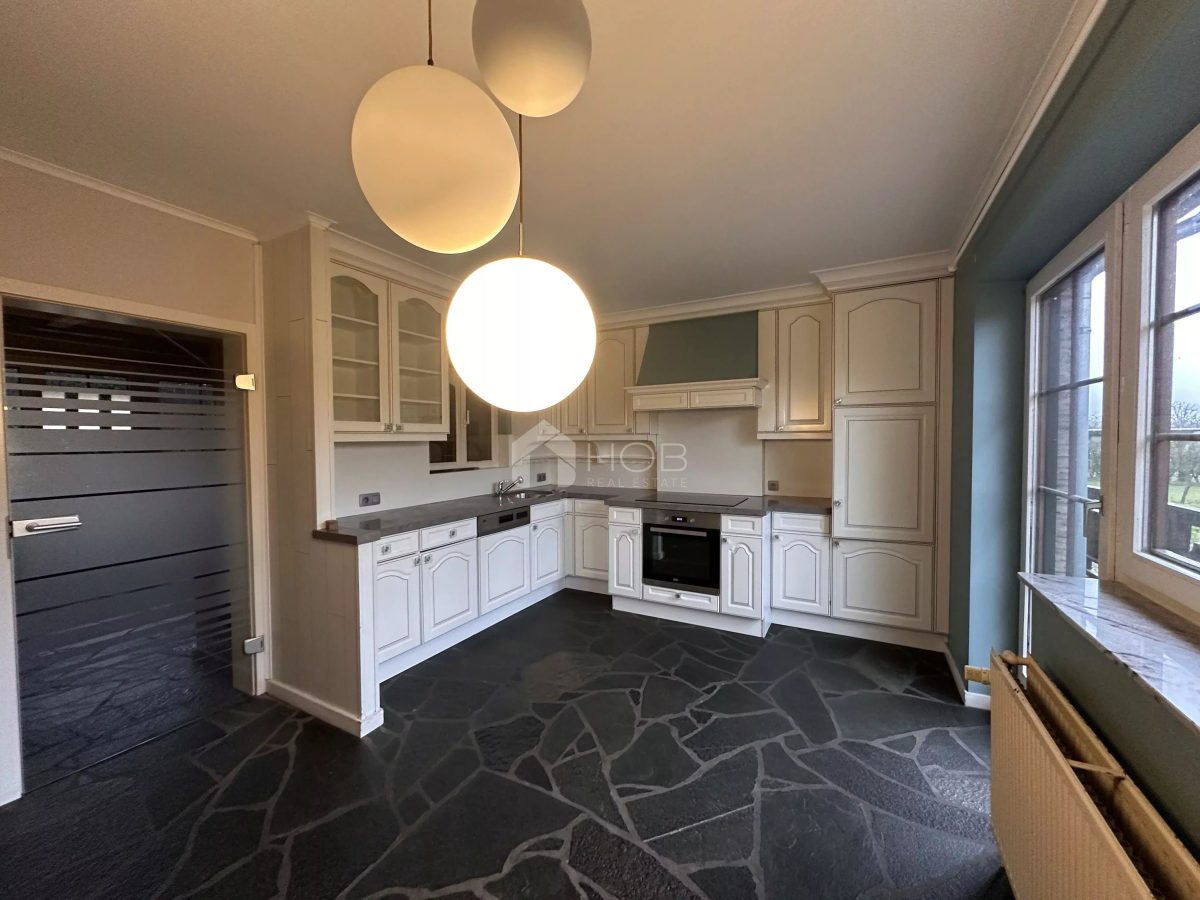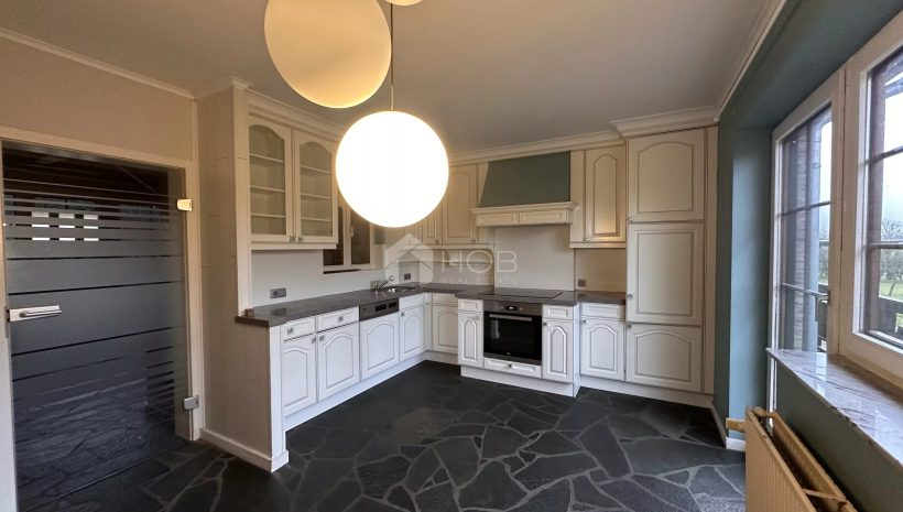 Dieses massiv gebaute Einfamilienhaus aus 1987 vereint hochwertige Materialien, viel Platz und eine idyllische Wohnlage. Die Klinkerfassade, das Schieferdach und die großzügigen Fensterfronten verleihen dem Haus ein zeitloses und gepflegtes Erscheinungsbild.