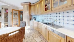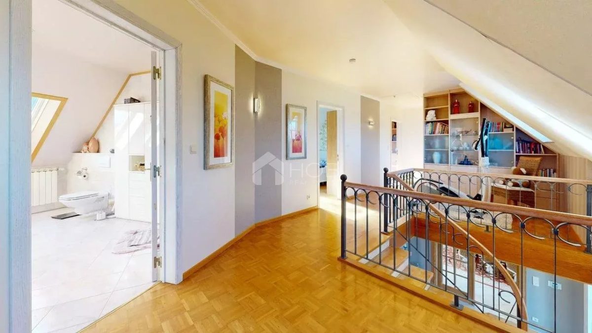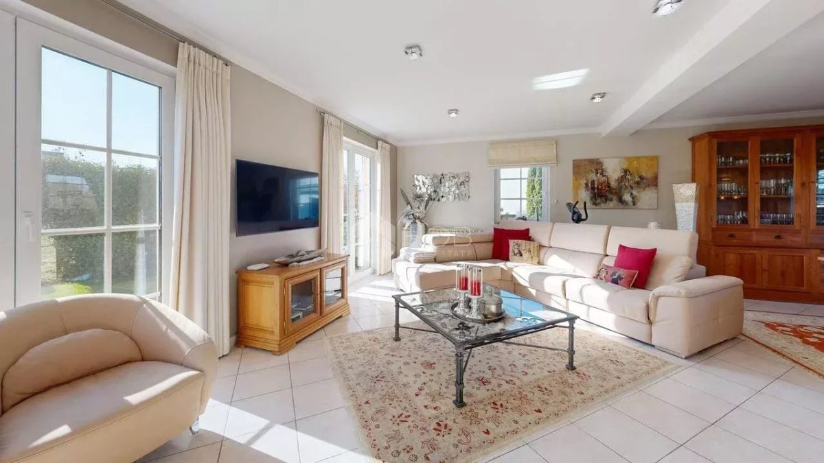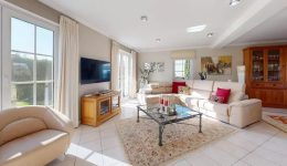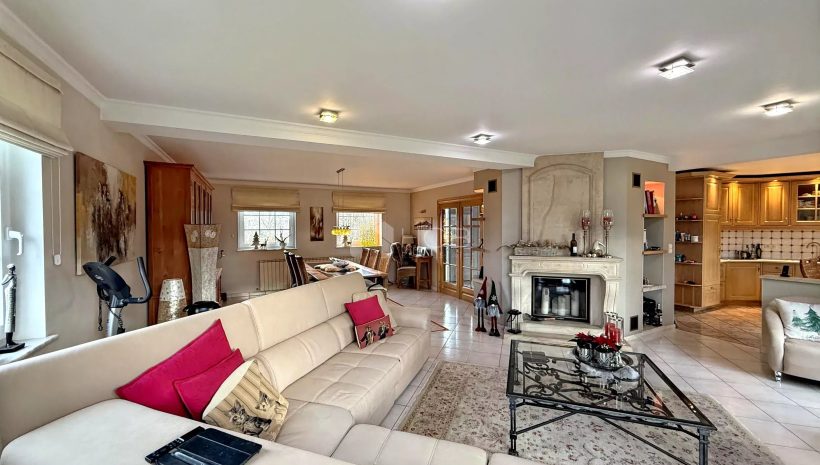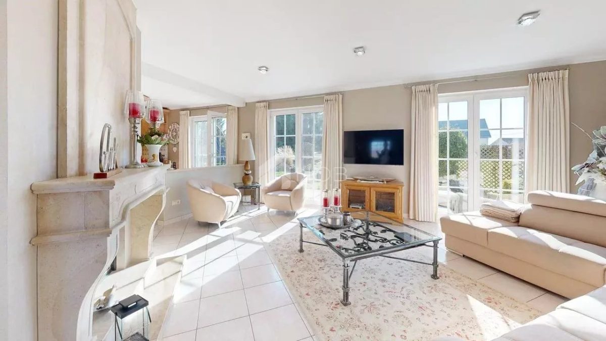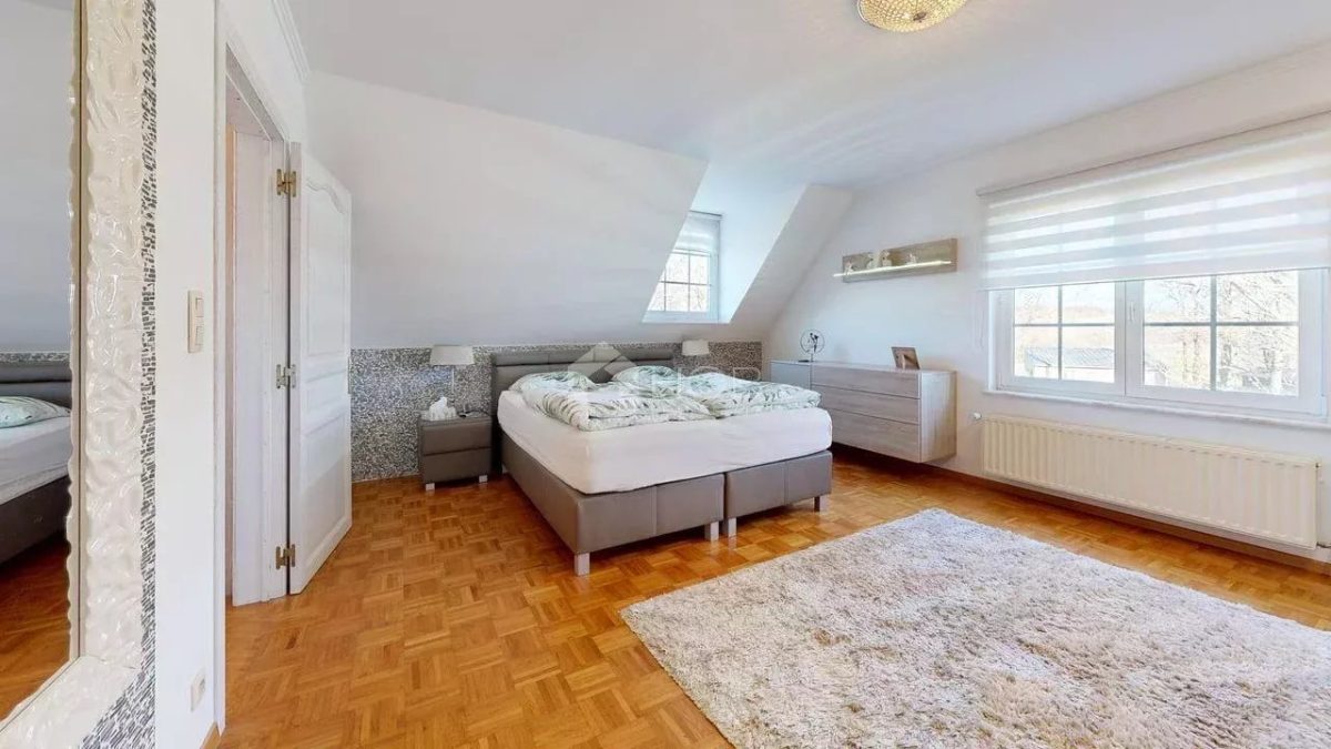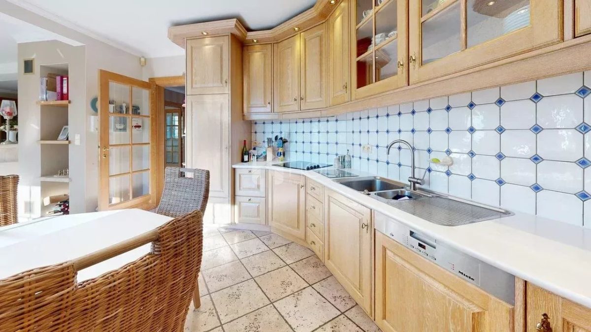 Die Wohnfläche von ca. 204 m² bietet viel Platz für komfortables Wohnen. Bereits beim Betreten spürt man die Qualität der verbauten Materialien: Echtholztüren, Echtholzparkett sowie ein offener Kamin im Wohnzimmer schaffen eine warme und einladende Atmosphäre.