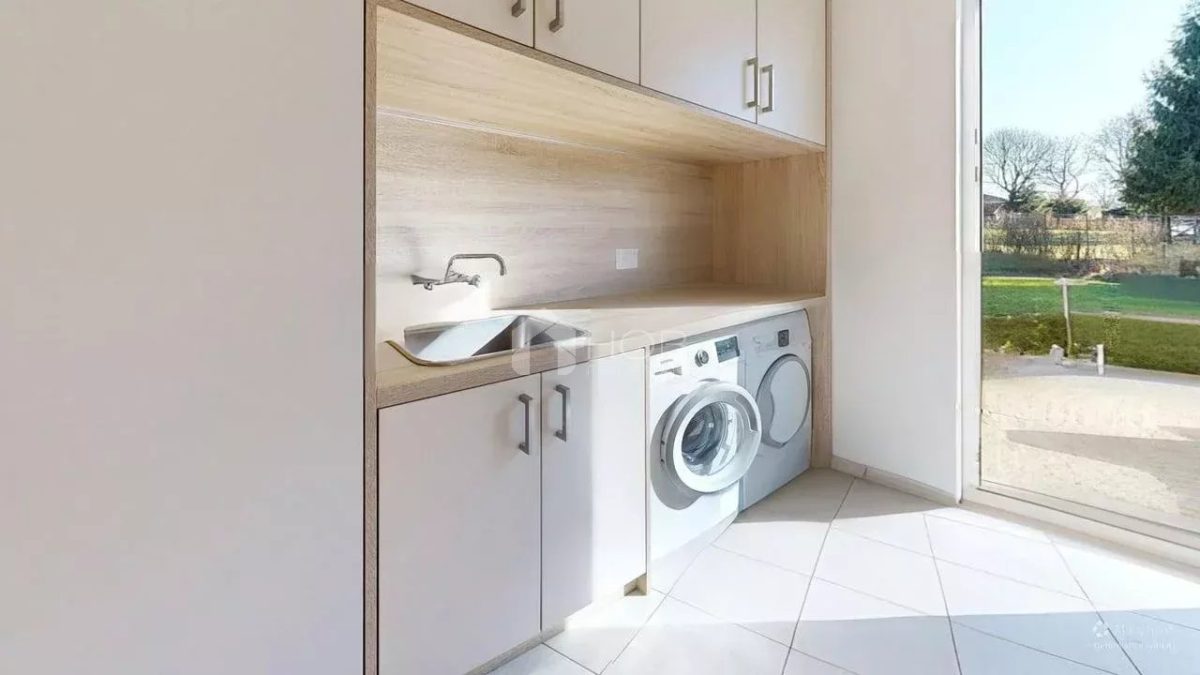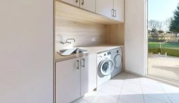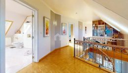 Im Erdgeschoss sorgt Sicherheitsglas für zusätzlichen Komfort und Sicherheit. Insektenschutzgitter, Stores sowie ein maßgefertigt eingerichteter Wäscheraum unterstreichen den hohen Ausstattungsstandard des Hauses.