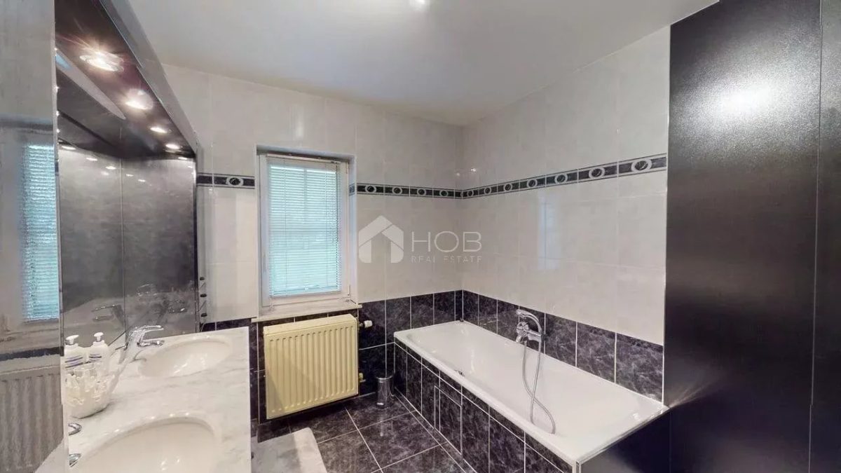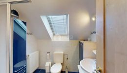 Das Haus verfügt über drei komfortable Schlafzimmer, darunter ein Hauptschlafzimmer mit separatem Dressing. Zwei Badezimmer sowie eine zusätzliche separate Toilette sorgen für hohen Wohnkomfort und Alltagstauglichkeit.