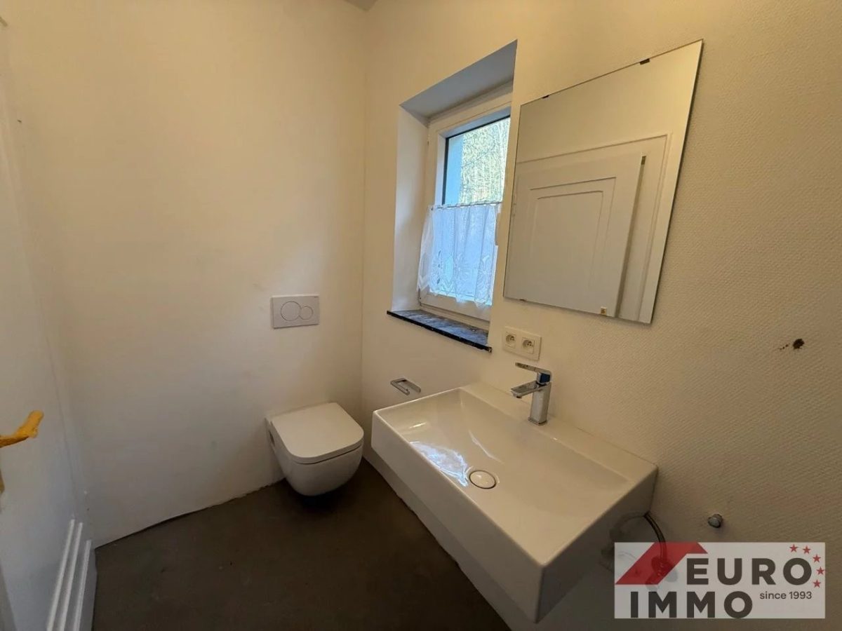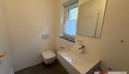 Das Badezimmer punktet mit einer bodengleichen, modernen Dusche, einem Waschbecken und zeitgemäßer Ausstattung. Ein separates WC ergänzt das Raumangebot und sorgt für zusätzlichen Komfort im Alltag.