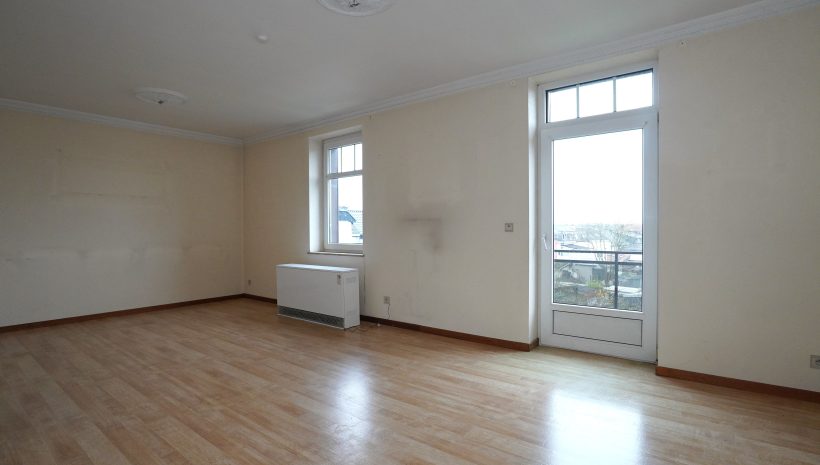 Wohnung 2: Großzügiges und lichtdurchflutetes Wohnzimmer mit Zugang zu einem optimal besonnten Balkon, Küchenbereich, ein Schlafzimmer sowie ein Badezimmer mit Dusche, Waschbecken, WC und Waschmaschinenanschluss.