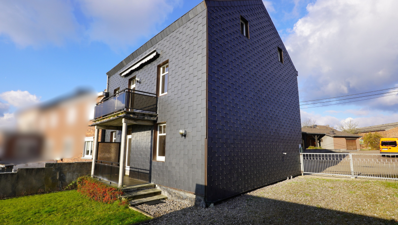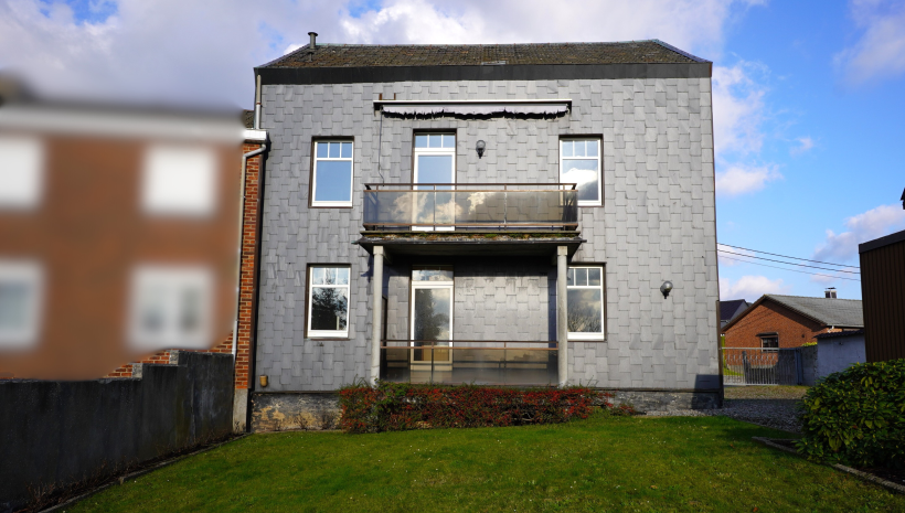 Großes und sehr gepflegtes Haus, derzeit aufgeteilt in zwei Wohnungen, mit großem Garten und zwei Garagen, gelegen in der Bachstraße 9 in 4720 Kelmis, auf einem 403 m² großen Grundstück.