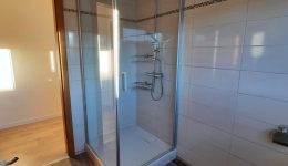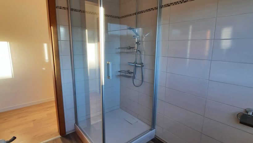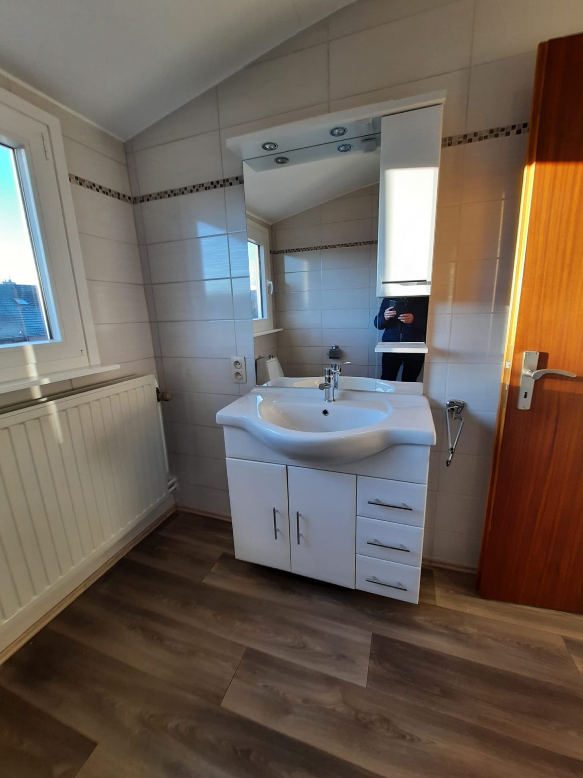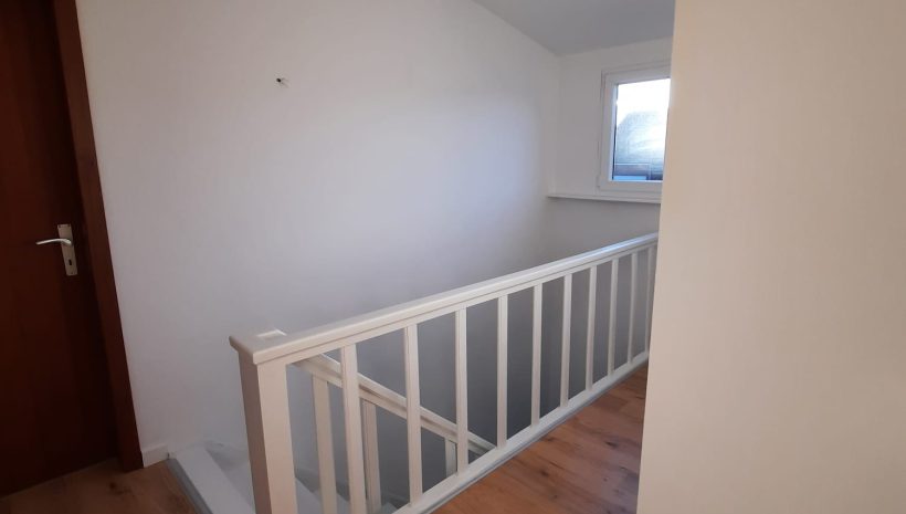 Das Obergeschoss umfasst drei geräumige Schlafzimmer, ein Badezimmer mit Dusche sowie einen Nachtflur mit Fenster.