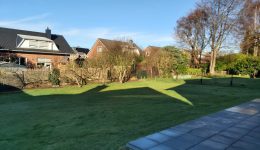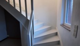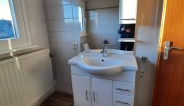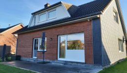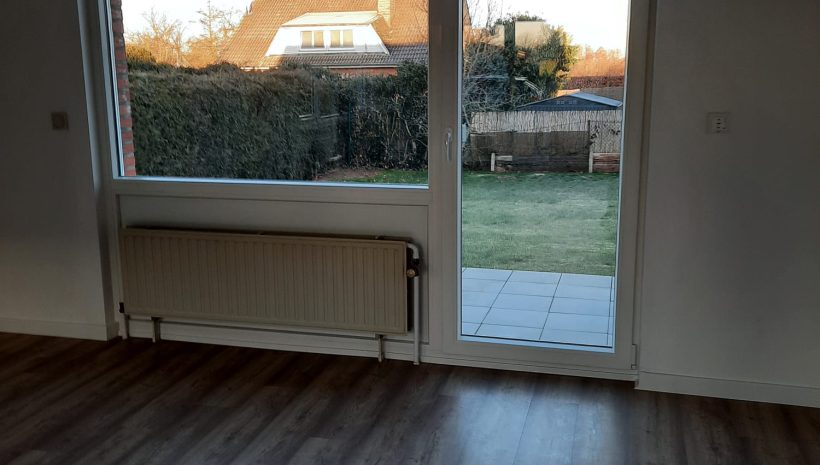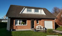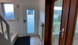Im Erdgeschoss erwartet Sie eine helle Diele mit Gäste-WC, ein lichtdurchflutetes Wohn-Esszimmer, ein Küche mit Einbauküche, ein an die Küche angrenzender Abstellraum/Waschküche sowie die große geflieste Garage. Vom Wohnraum sowie der Küche hat man einen direkten Zugang zur Terrasse und den Garten.