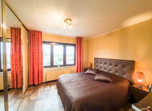 Dieses attraktive Zwei-Fassaden-Haus überzeugt durch eine funktionale Raumaufteilung und angenehmen Wohnkomfort und eignet sich ideal für eine Familie oder für eine freiberufliche Tätigkeit, bei der Wohnen und Arbeiten kombiniert werden sollen. Im Erdgeschoss empfängt Sie eine großzügige Eingangshalle mit Zugang zu einem Zimmer, das sich ideal als Büro eignet, zu einer zweiten Sommerküche mit direktem Zugang zum Garten sowie zu einer integrierten Garage. Diese Etage bietet eine hohe Nutzungsflexibilität und eine schöne Verbindung zum Außenbereich.