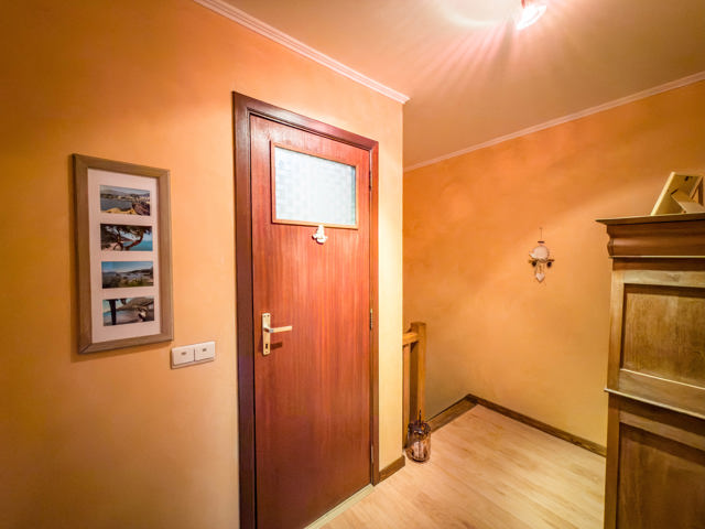Das Obergeschoss verfügt über einen Flur, der zu einem Schlafzimmer, zum Badezimmer sowie zum hellen und gemütlichen Wohnzimmer führt. Vom Wohnbereich aus gelangen Sie direkt in die Hauptküche sowie in ein zweites Schlafzimmer, was für eine angenehme und fließende Raumaufteilung sorgt.