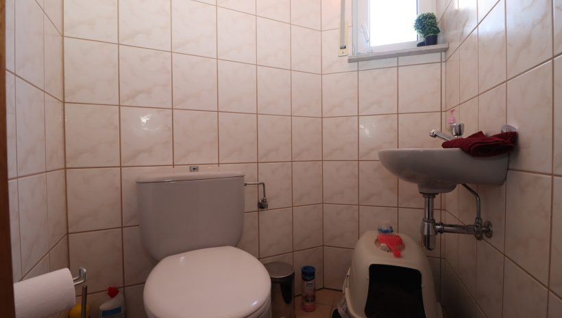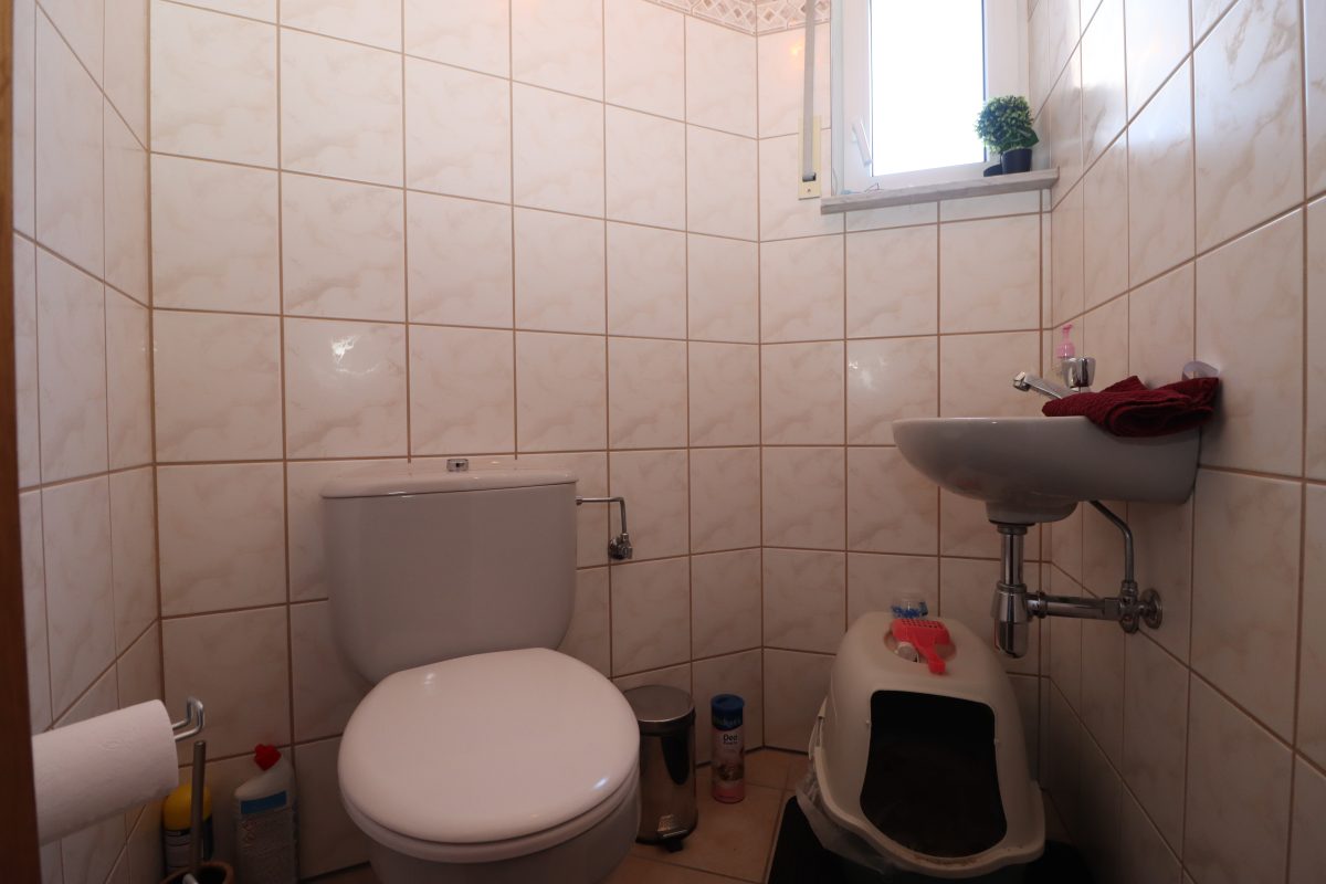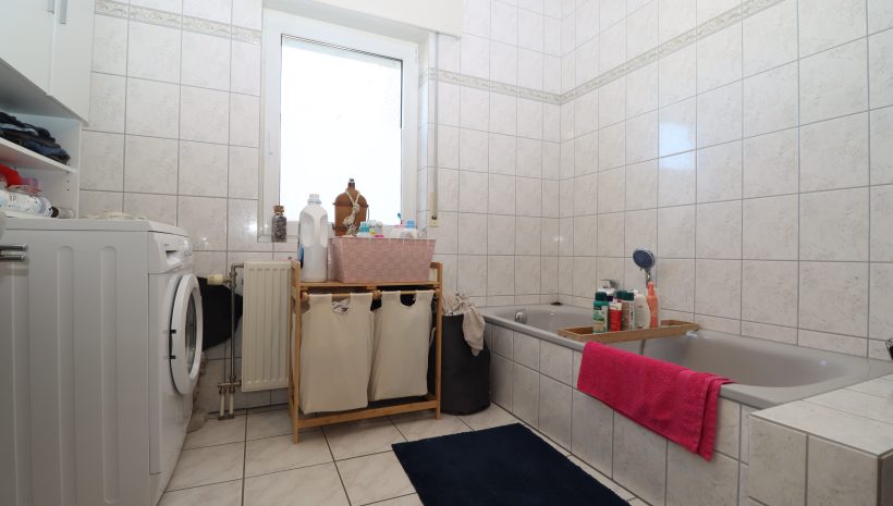 Das Appartement ist wie folgt aufgeteilt: Eingangsdiele, heller Wohnbereich mit Essecke, separate Küche ausgestattet mit einer vollwertigen Einbauküche inkl. aller Geräte, Gäste-WC, zwei Schlafzimmer, Abstellraum und ein Badezimmer. Das Badezimmer ist ausgestattet mit Waschbecken, Dusche, Badewanne und Toilette.